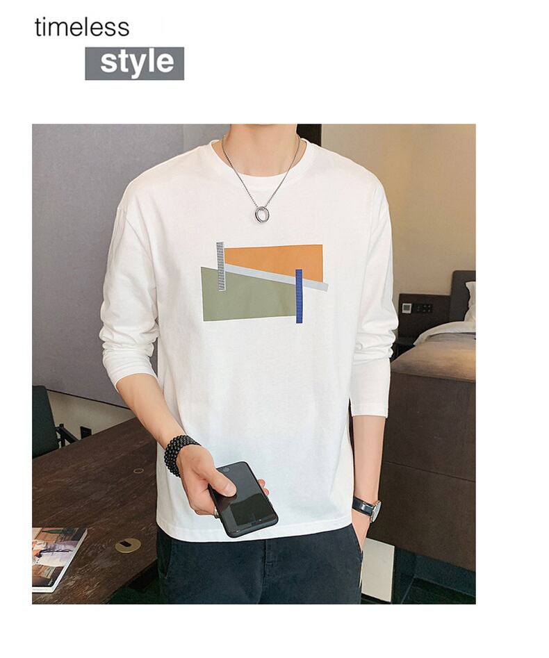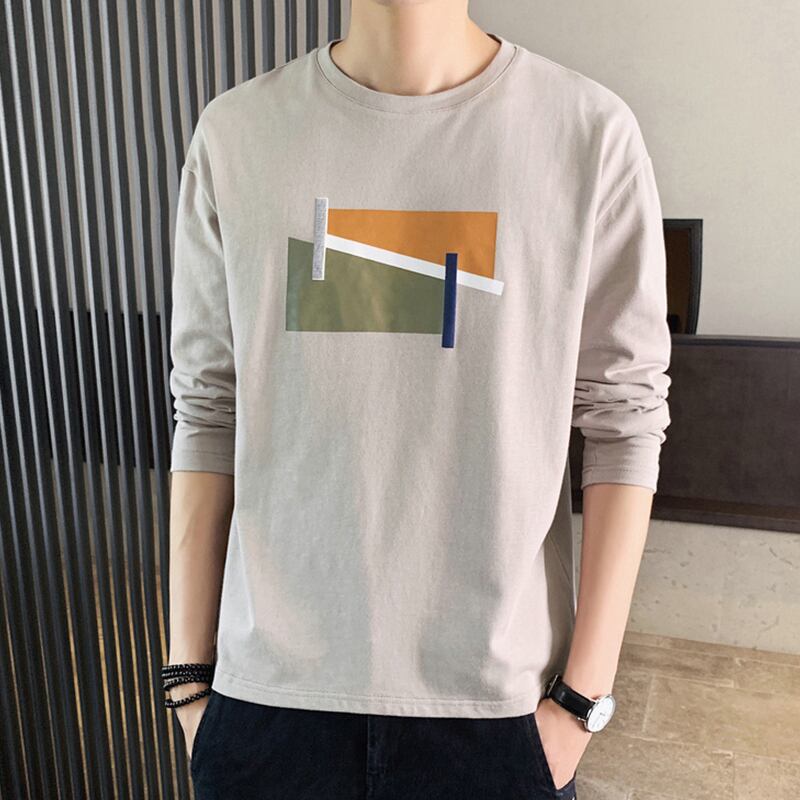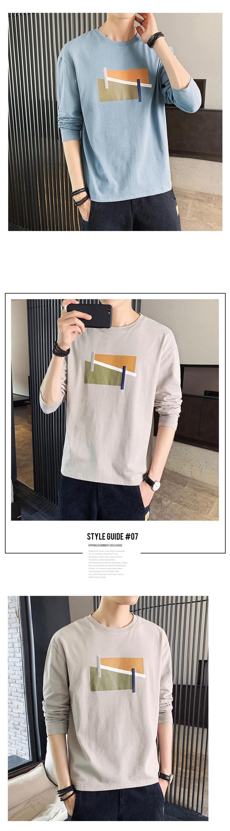 Round neck loose long-sleeved t-shirt men's trend all-match color-block printing bottoming shirt 2022 autumn new cotton top ロング コットン オータム 秋物 Oネック Tシャツ doushi19050314568