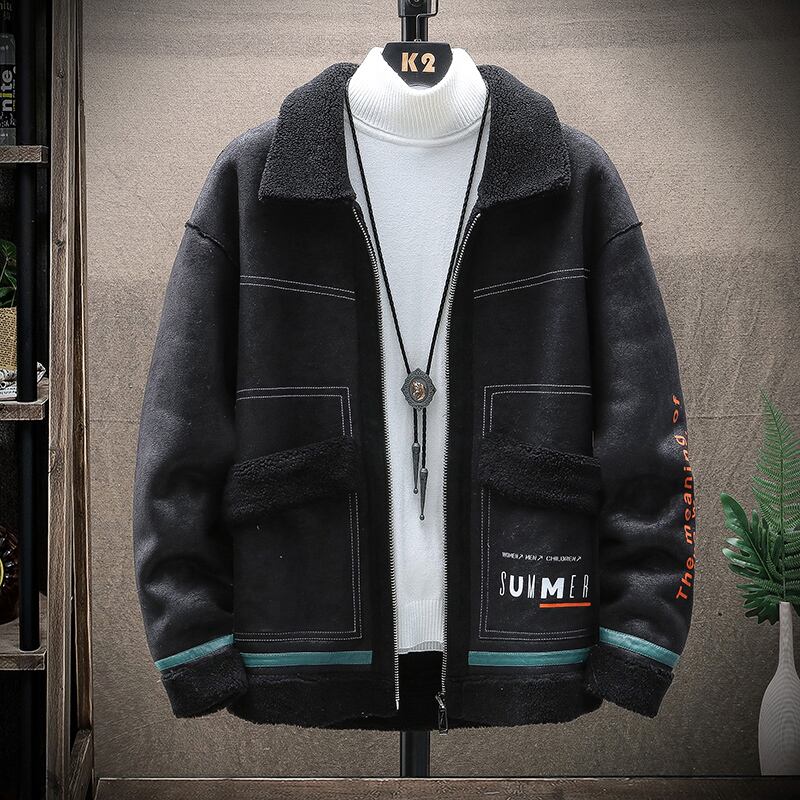Lamb velvet and fur all-in-one cotton coat men's winter short parka cotton clothes youth handsome motorcycle clothes boys jacket ショート コットン ウィンター 冬物 doushi37960538246