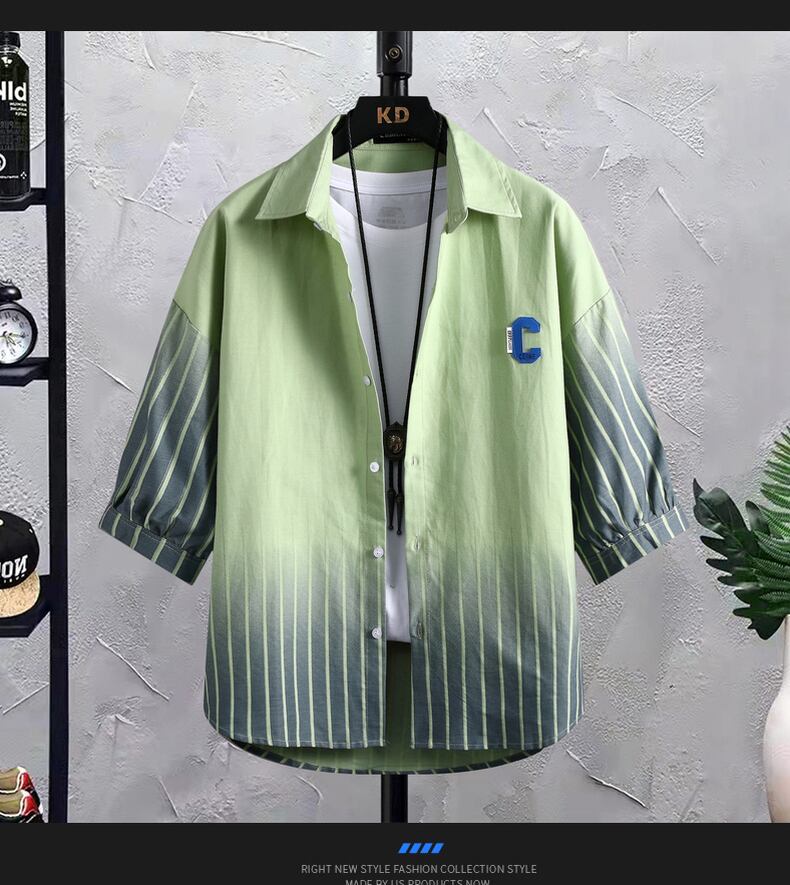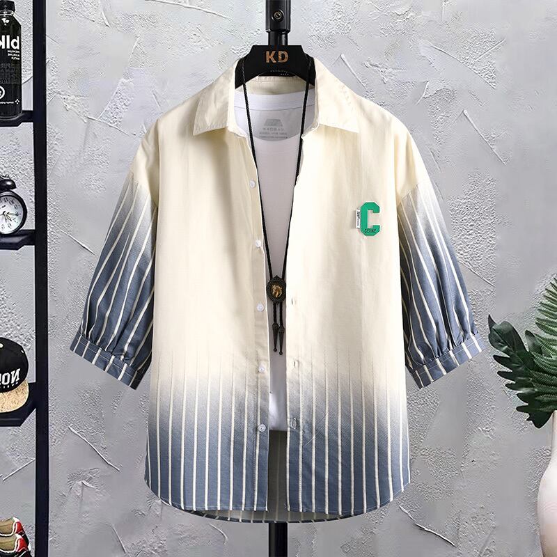 Cotton three-quarter sleeve shirt men's short-sleeved version gradient striped thin shirt men's casual handsome jacket trend コットン カジュアル ストライプ doushi52231052272