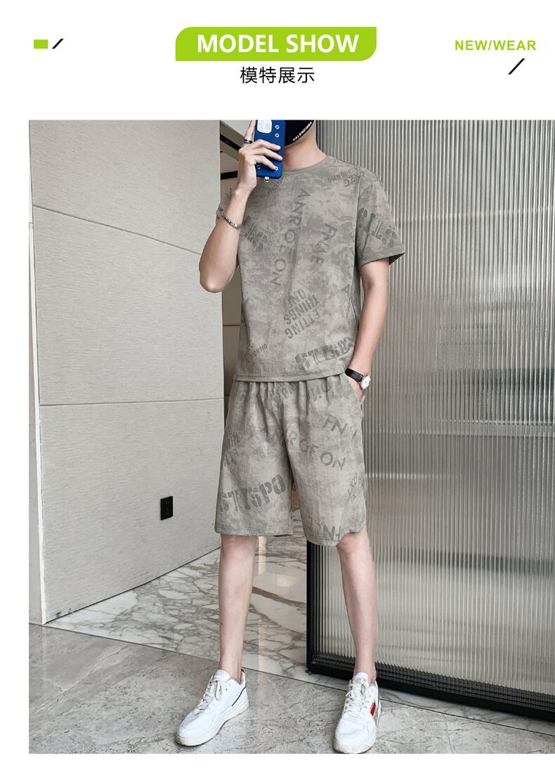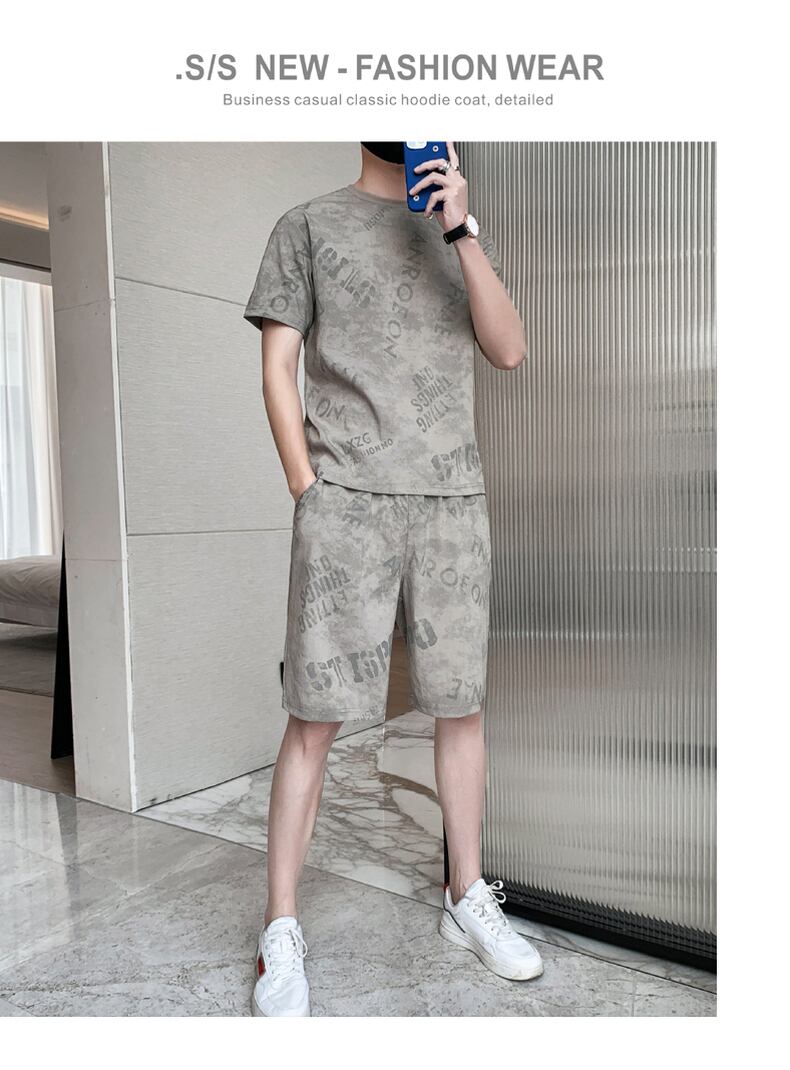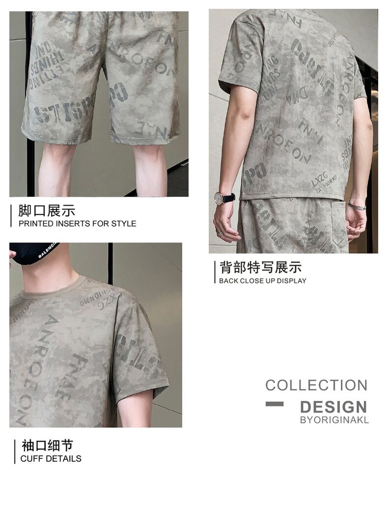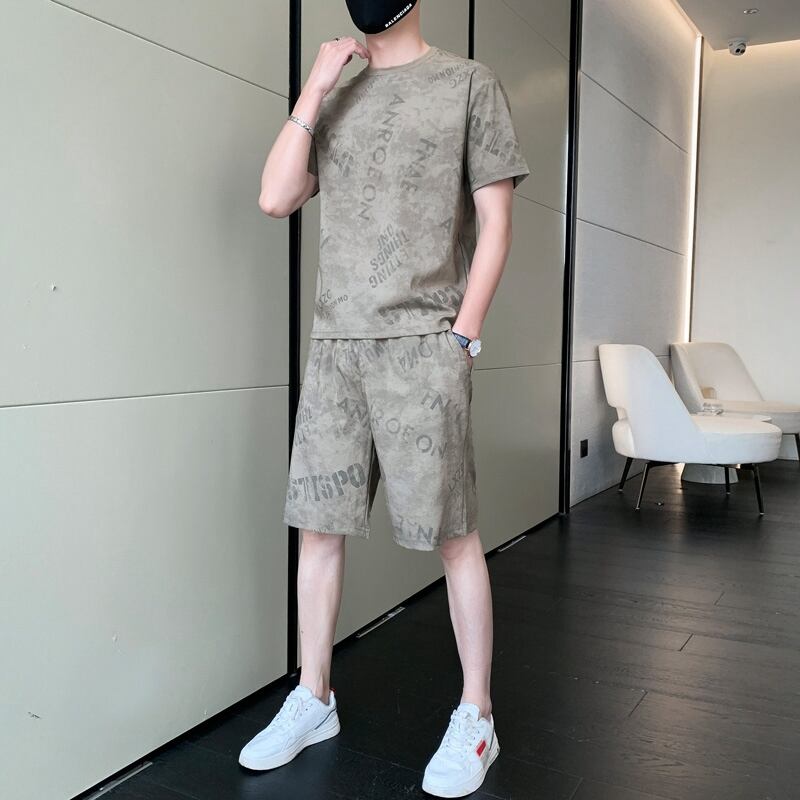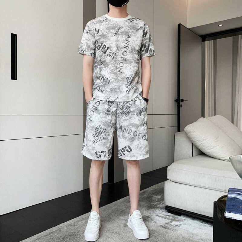 Summer ice silk casual short-sleeved men's t-shirt set with handsome teenager student shorts suit fashion clothes カジュアル サマー 夏物 ショーツ ブルマー シルク Tシャツ doushi53695247663