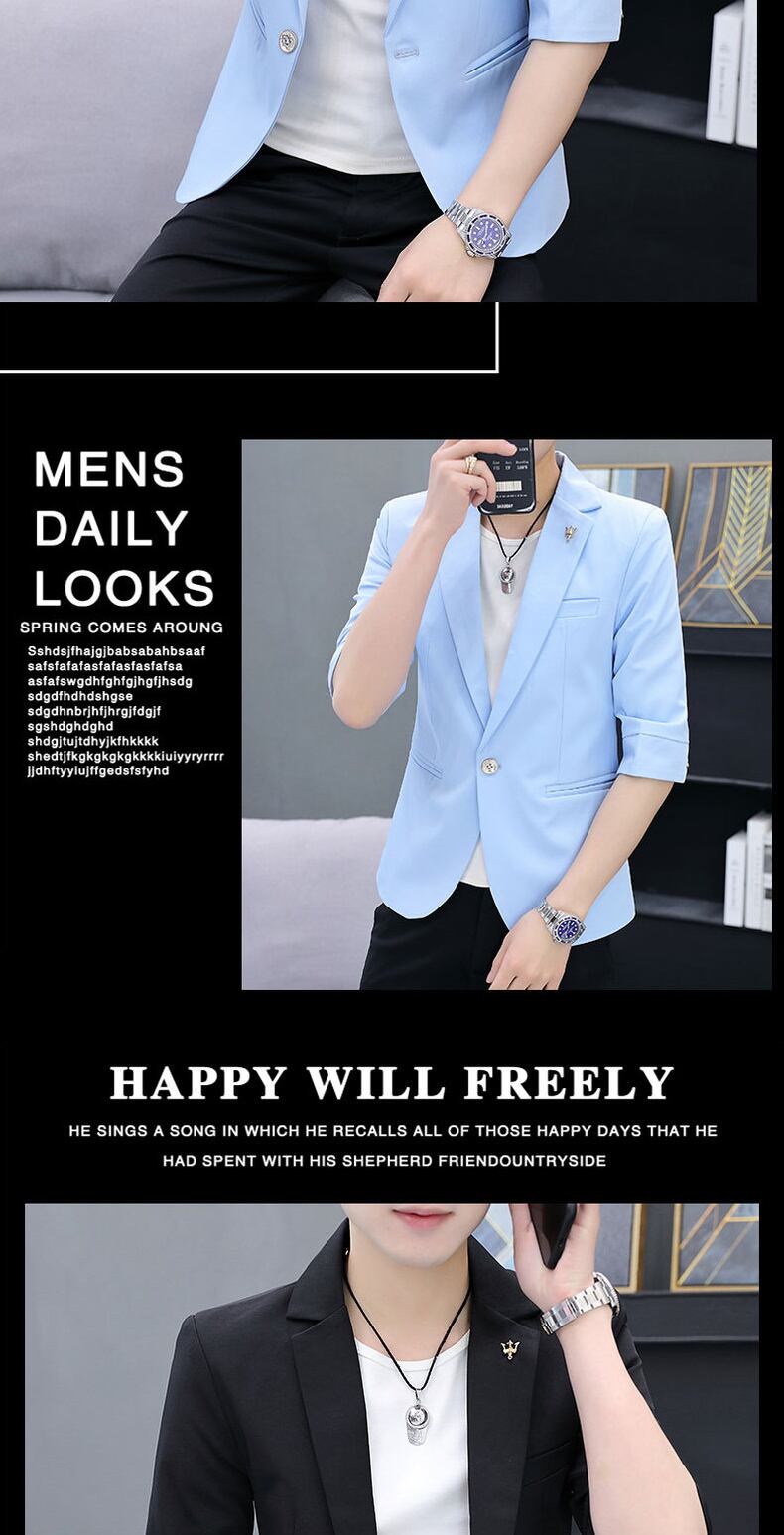 Summer thin small suit men's three-quarter sleeve jacket Slim fit trend ruffian handsome solid color suit middle sleeve top clothes サマー 夏物 スリム ソリッドカラー doushi2736054439
