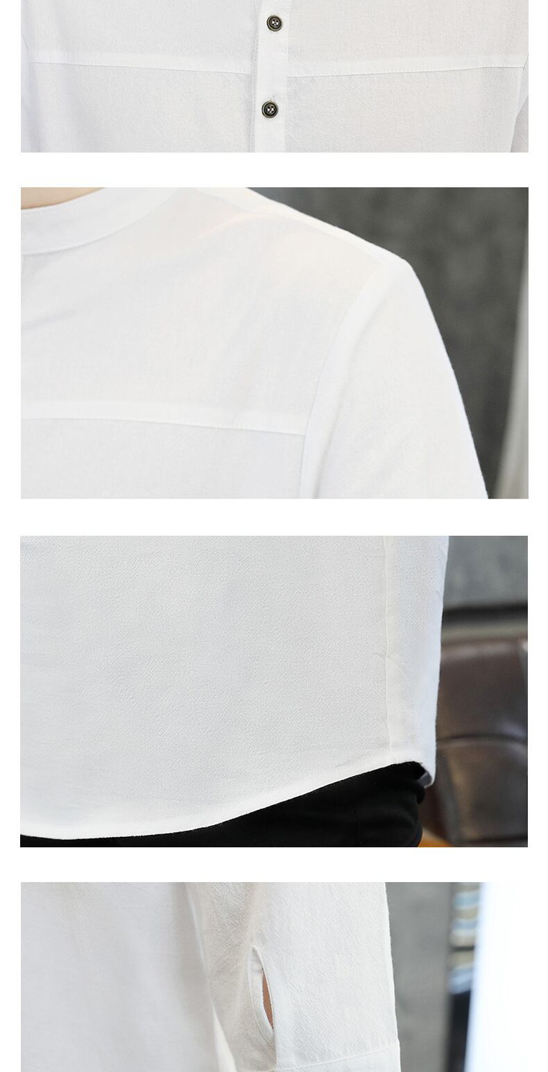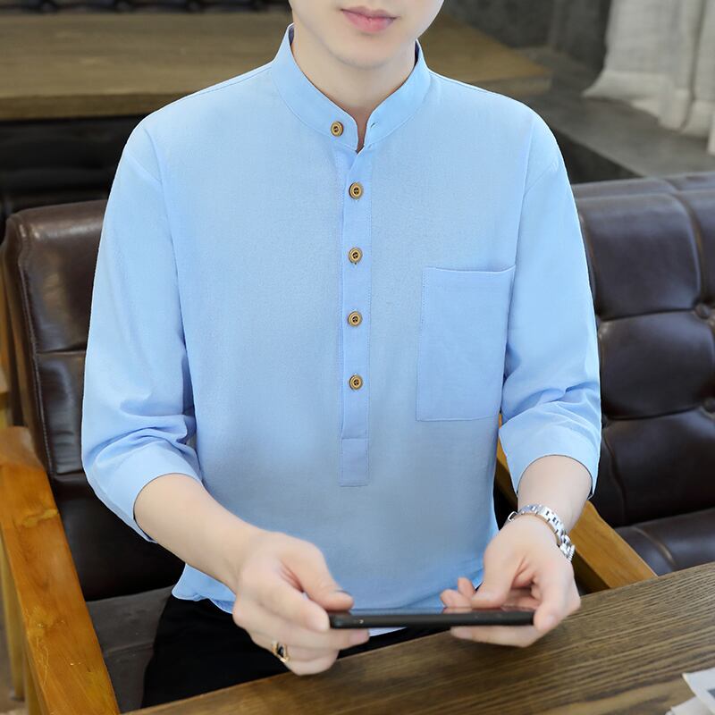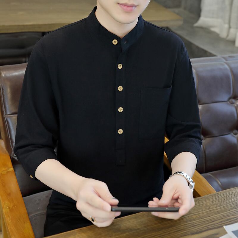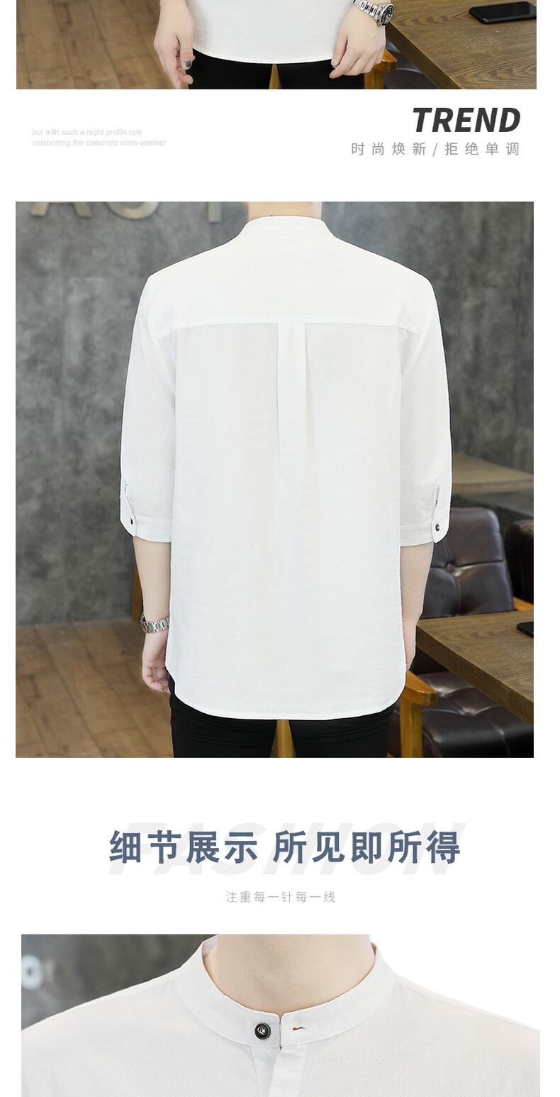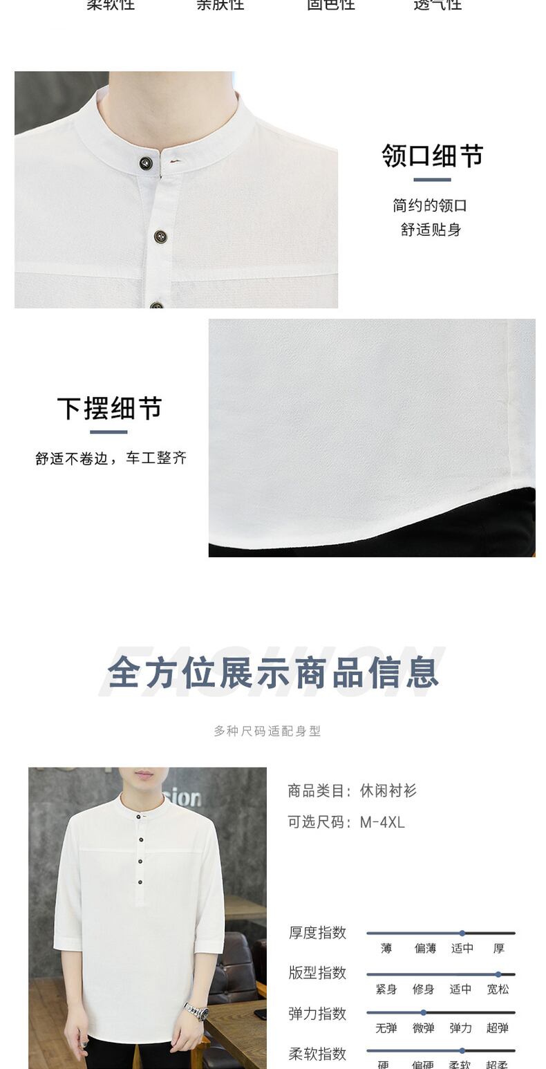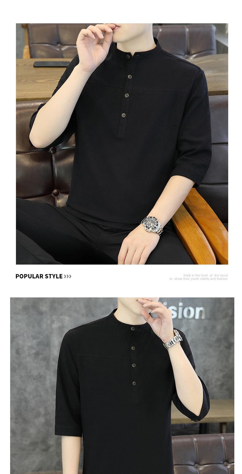 Shirt collar short-sleeved men's summer ice silk cotton linen three-quarter sleeve T-shirt Tide brand clothes Chinese style men's T-shirt コットン サマー 夏物 シルク Tシャツ doushi25421232177
