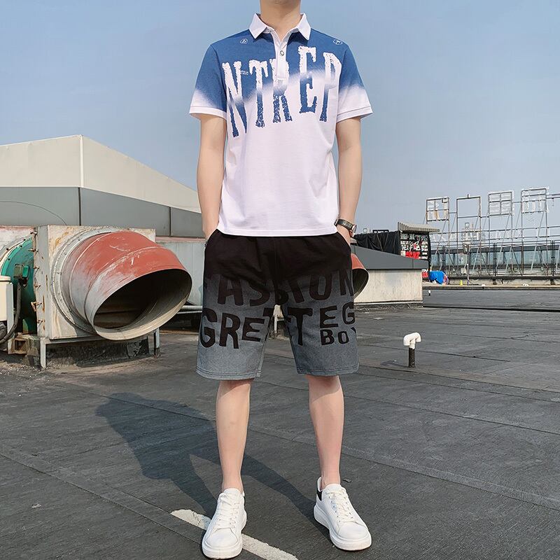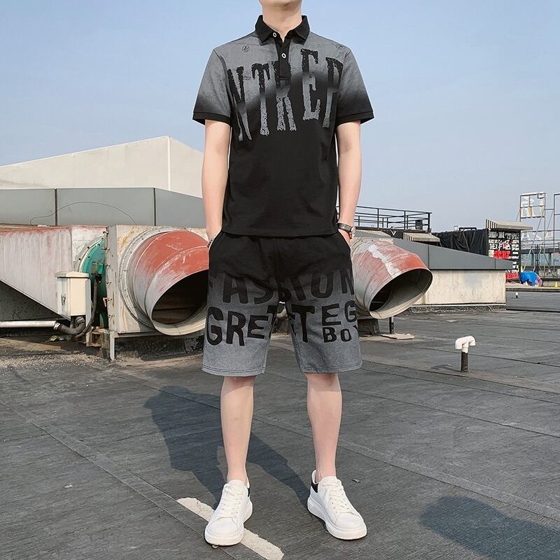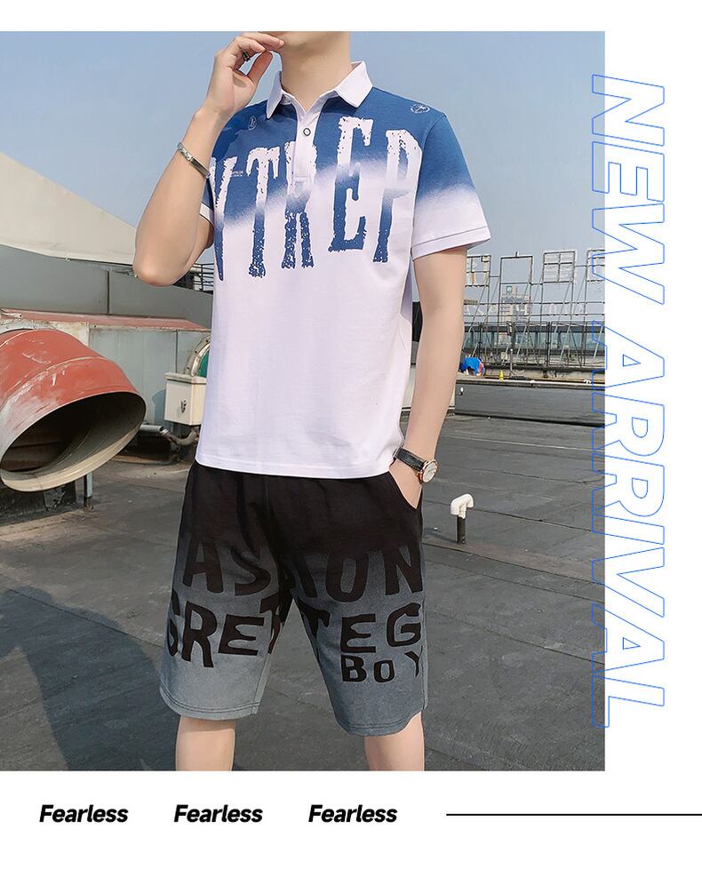 Summer Men's Shirt Collar Gradient Short Sleeve T-Shirt Set with Collar Polo Polo Shirt Set ショート 半袖 ハーフスリーブ サマー 夏物 Tシャツ doushi23751131947