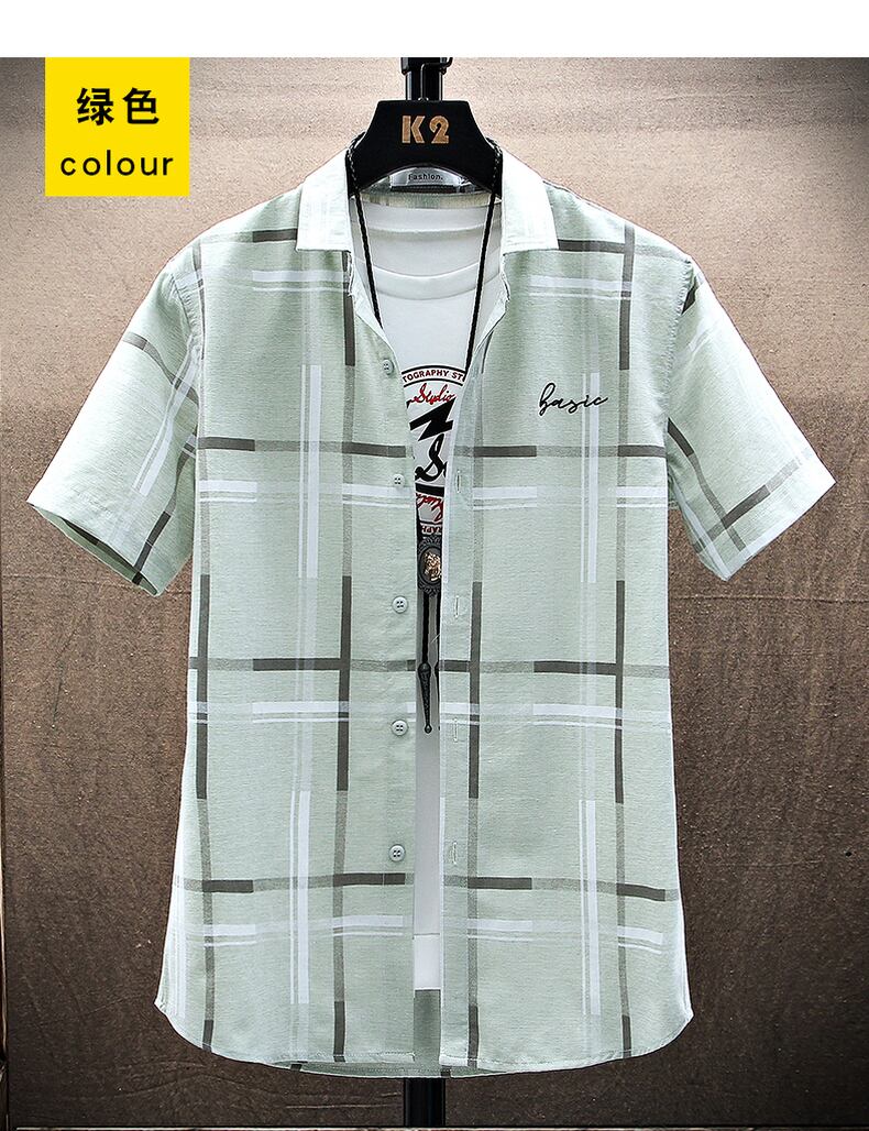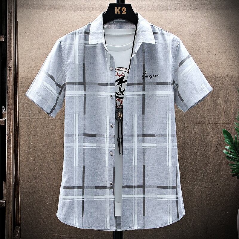 Ice silk shirt men's short-sleeved summer thin shirt coat high-end trend handsome casual top summer inch shirt カジュアル サマー 夏物 シルク doushi92995711079