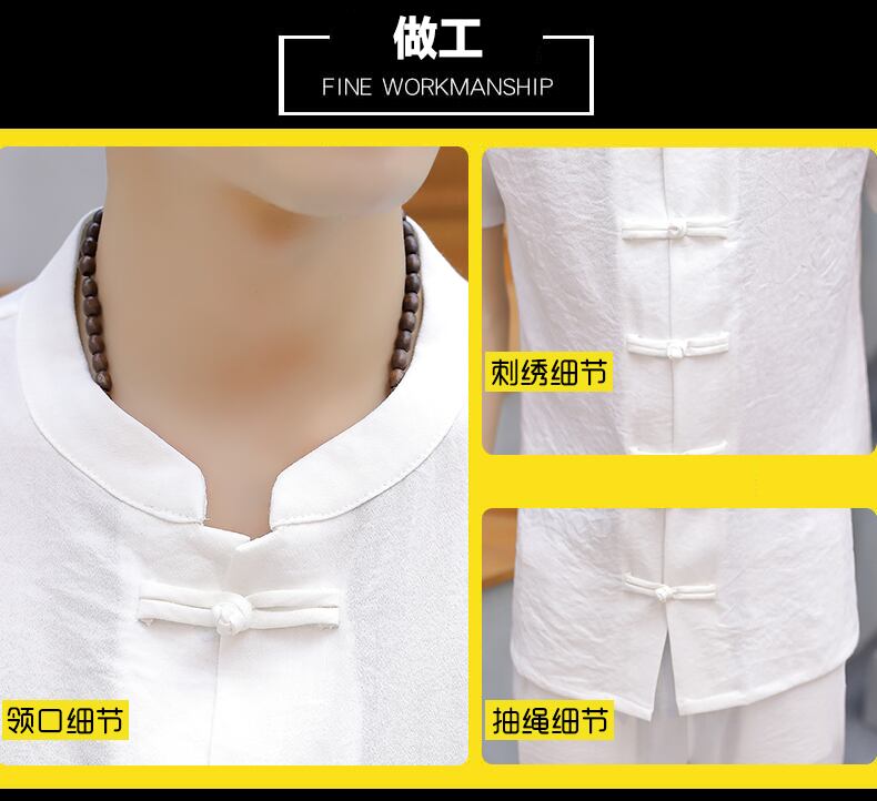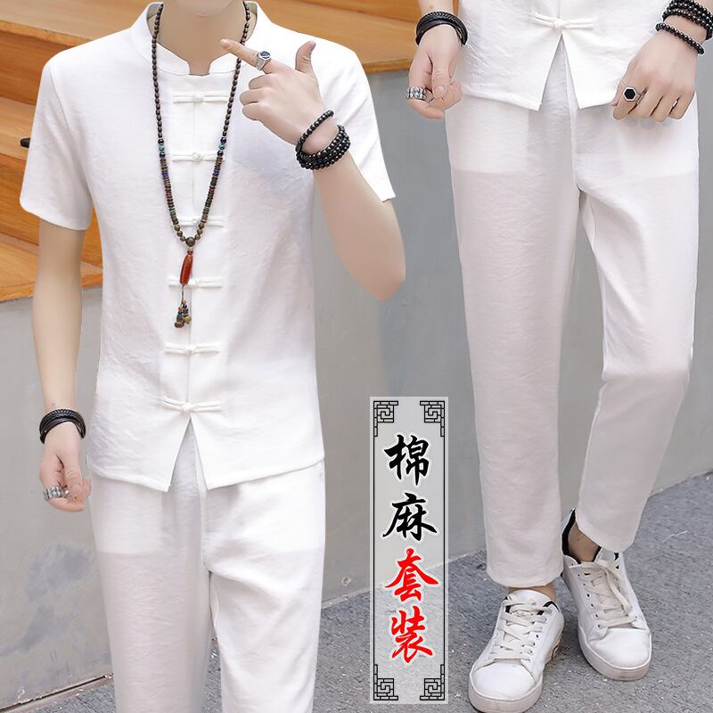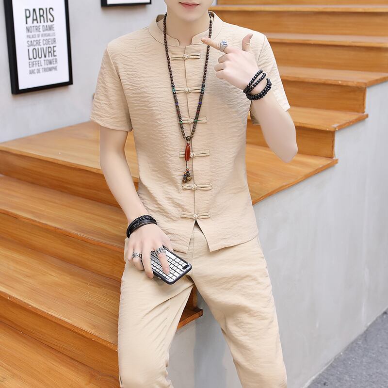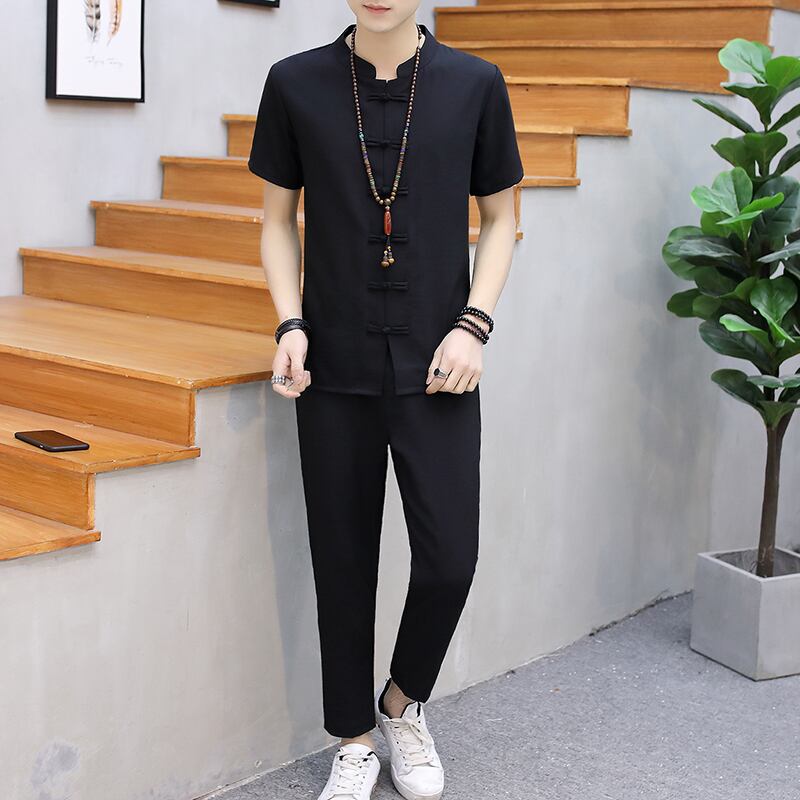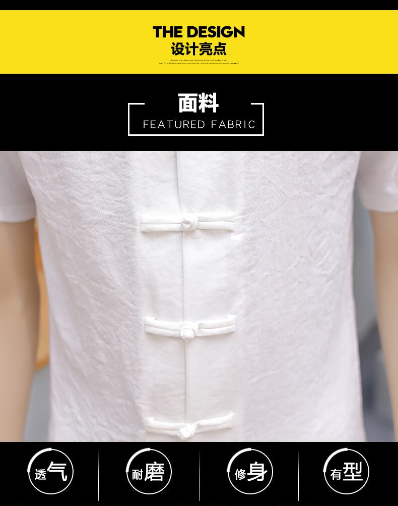 Solid color Chinese style men's summer linen suit short-sleeved t-shirt buckle Chinese Tang suit casual retro Hanfu tide レトロ カジュアル サマー 夏物 Tシャツ ソリッドカラー doushi76949943247