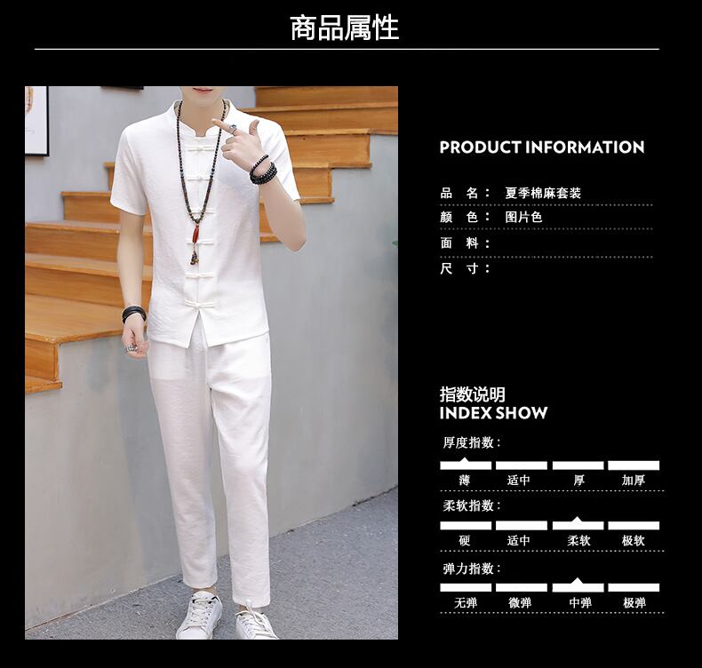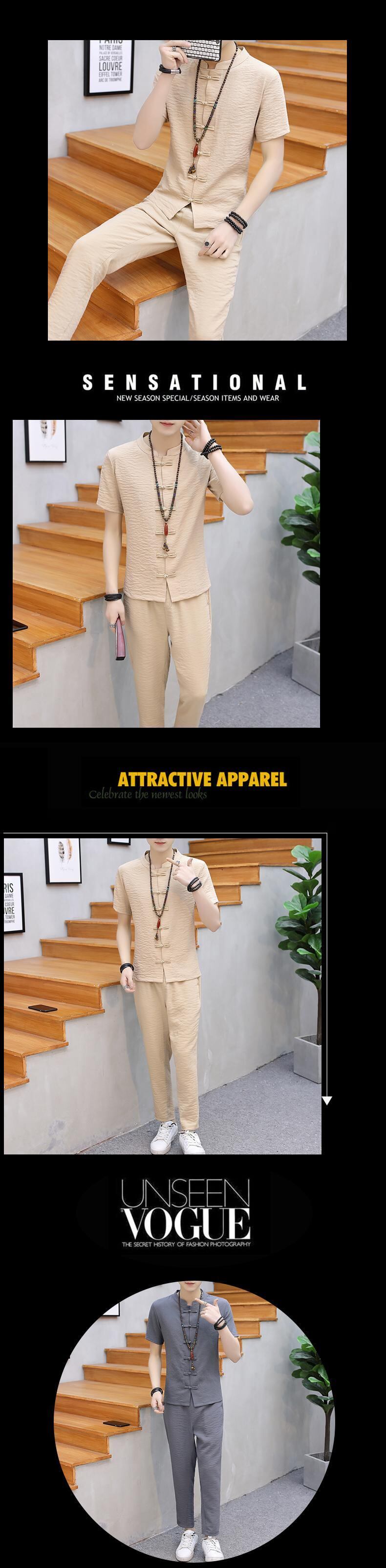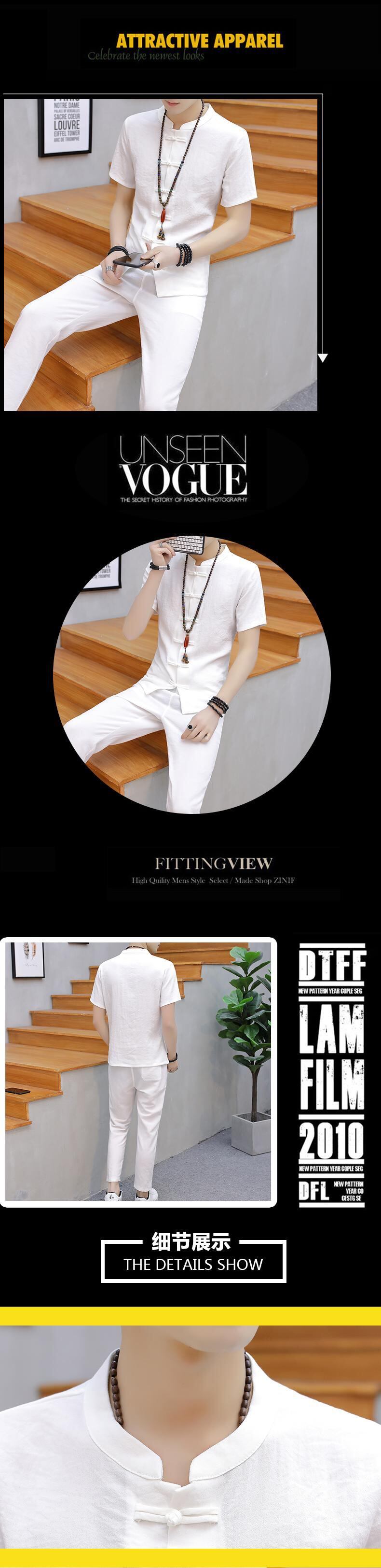 Solid color Chinese style men's summer linen suit short-sleeved t-shirt buckle Chinese Tang suit casual retro Hanfu tide レトロ カジュアル サマー 夏物 Tシャツ ソリッドカラー doushi76949943247