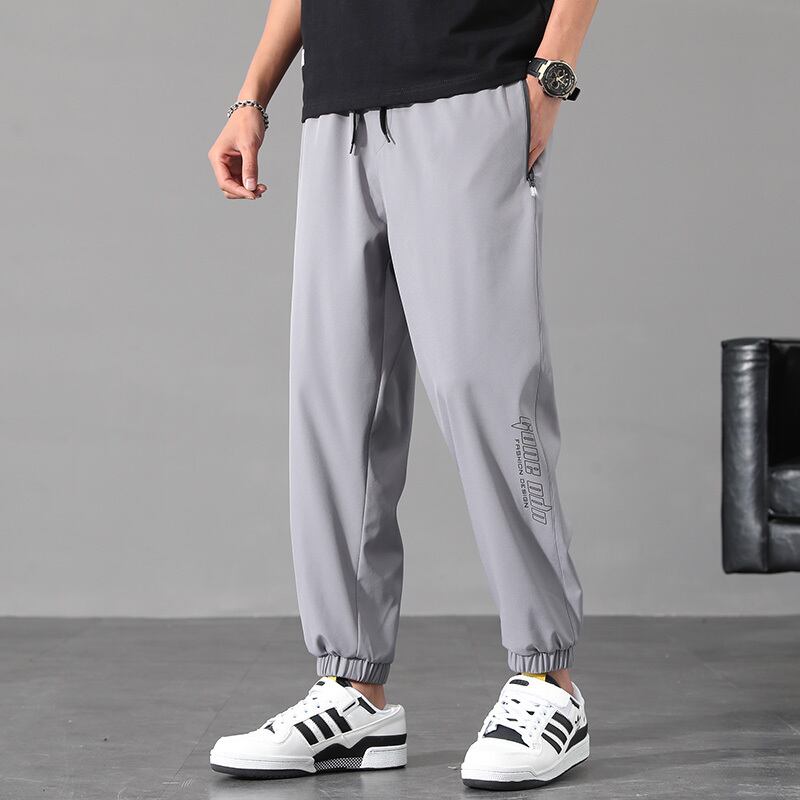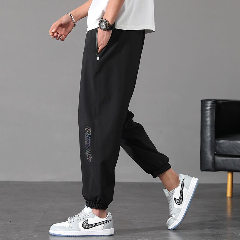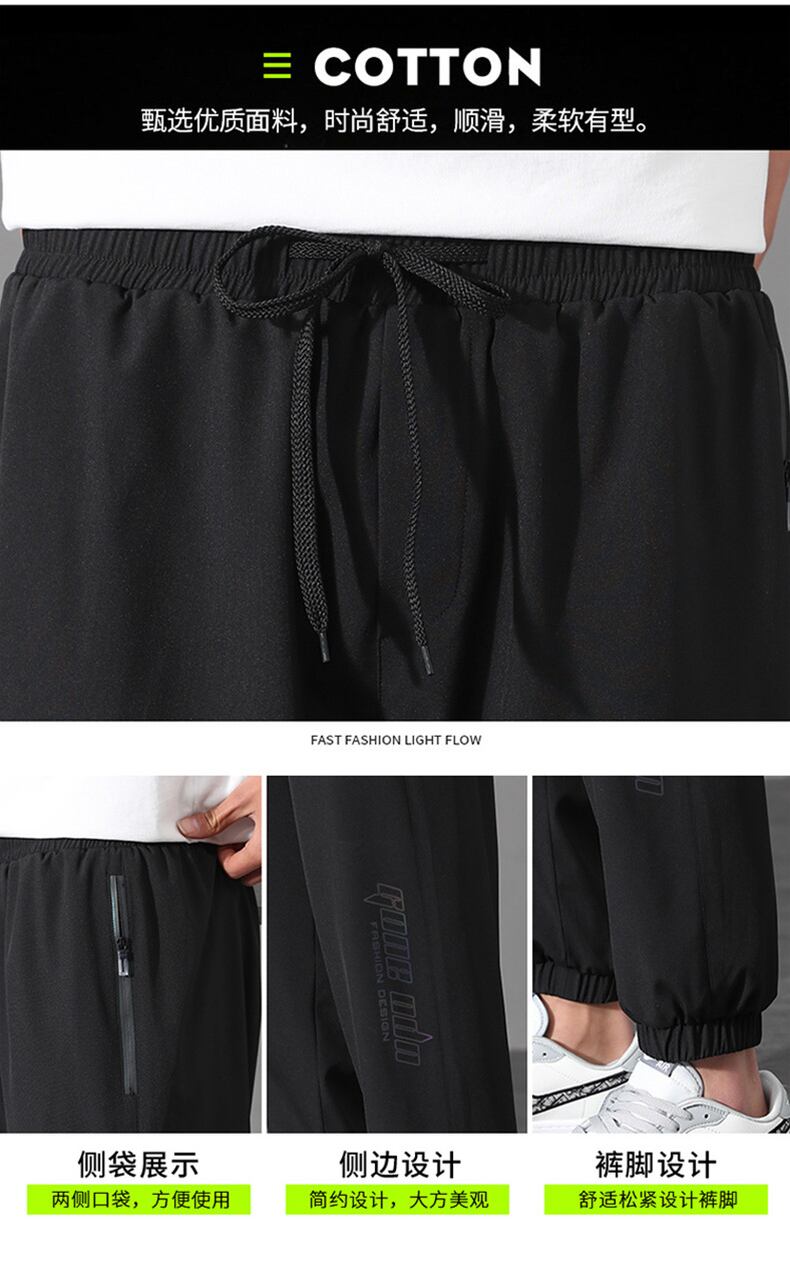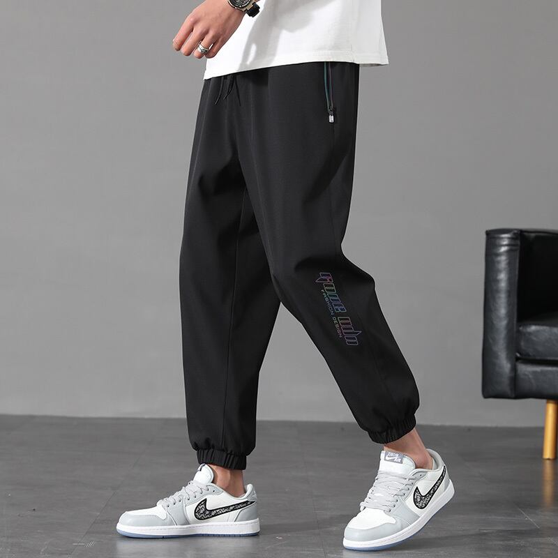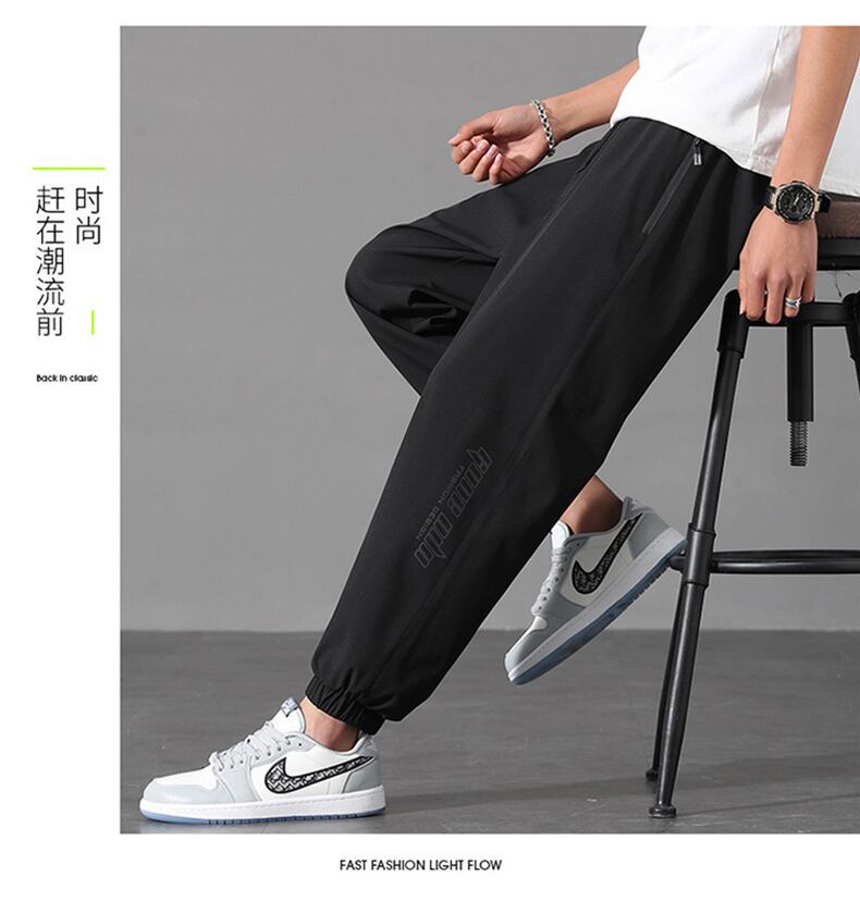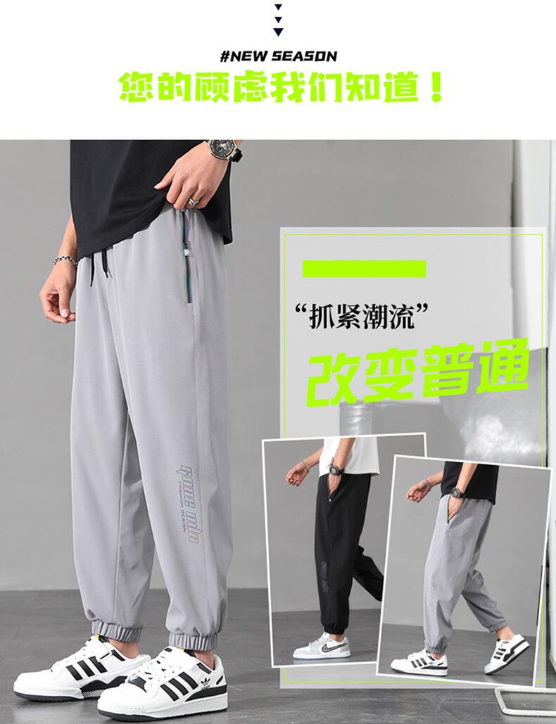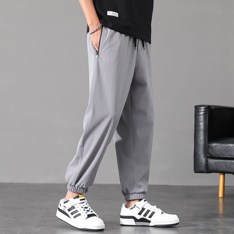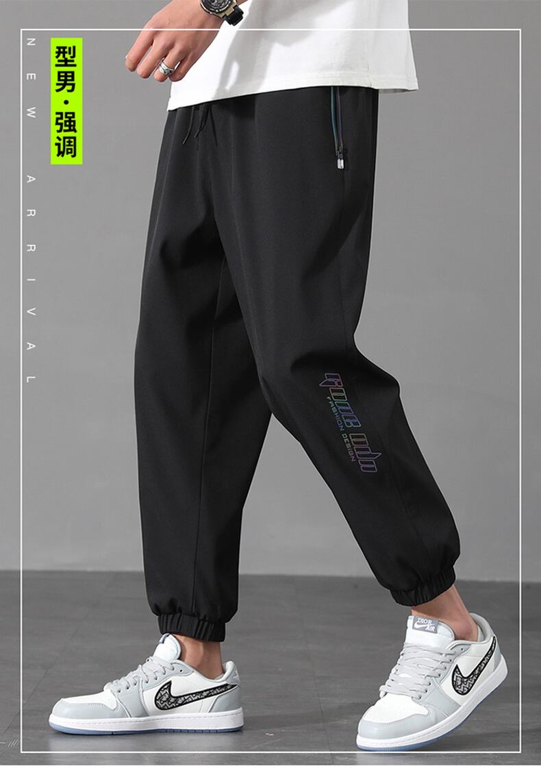 Trendy ice silk pants men's summer beam nine points casual trousers men's sports pants loose tapered pants tide brand men レッド カジュアル サマー 夏物 シルク doushi66085863492
