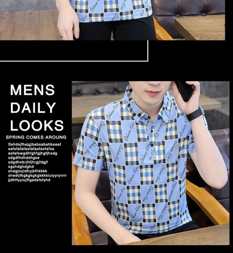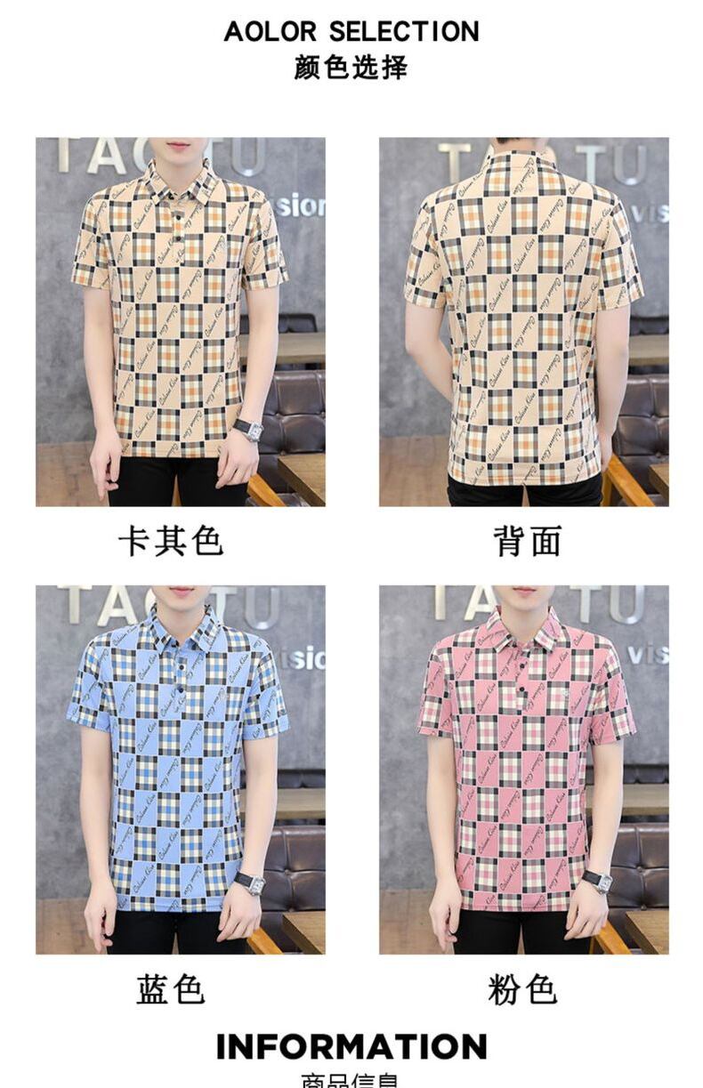 Ice silk short-sleeved t-shirt men's summer trend lapel plaid business polo shirt t-shirt half-sleeved ice high-end top サマー 夏物 シルク Tシャツ doushi14119173223