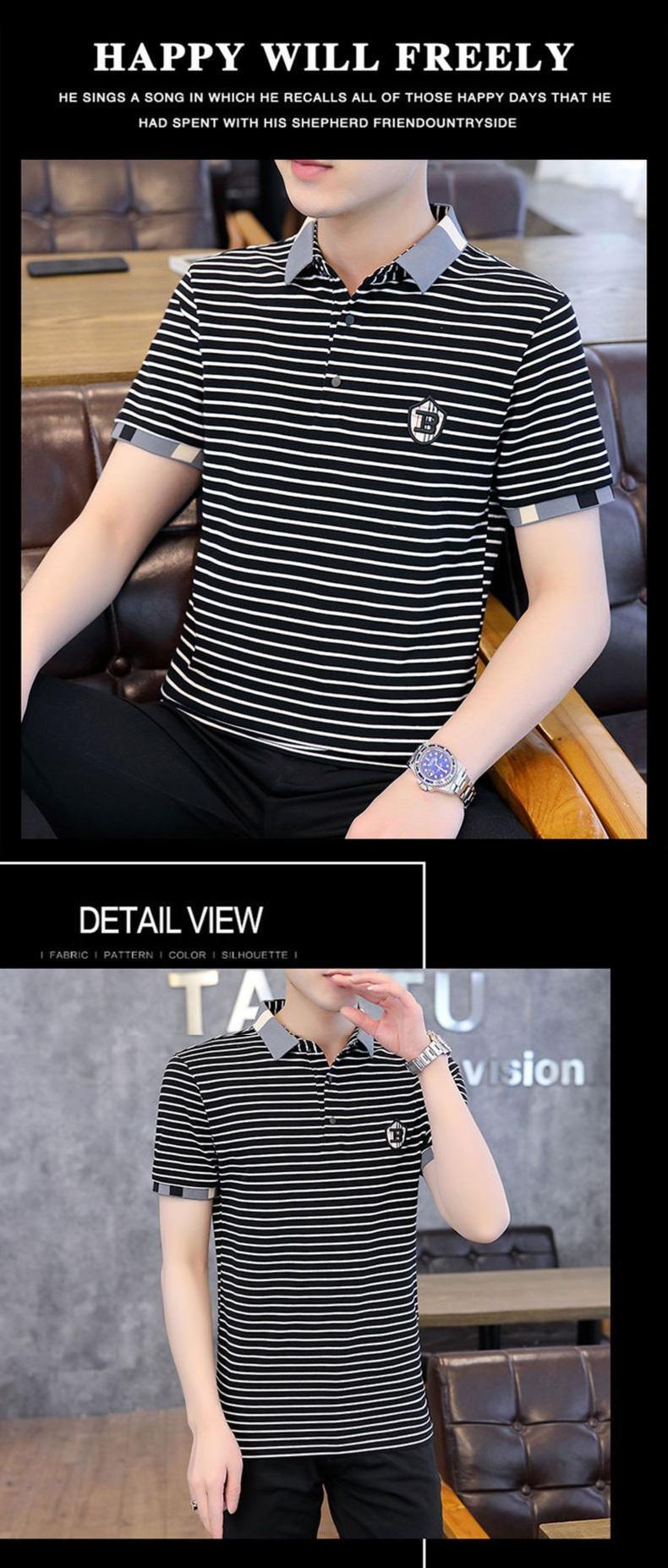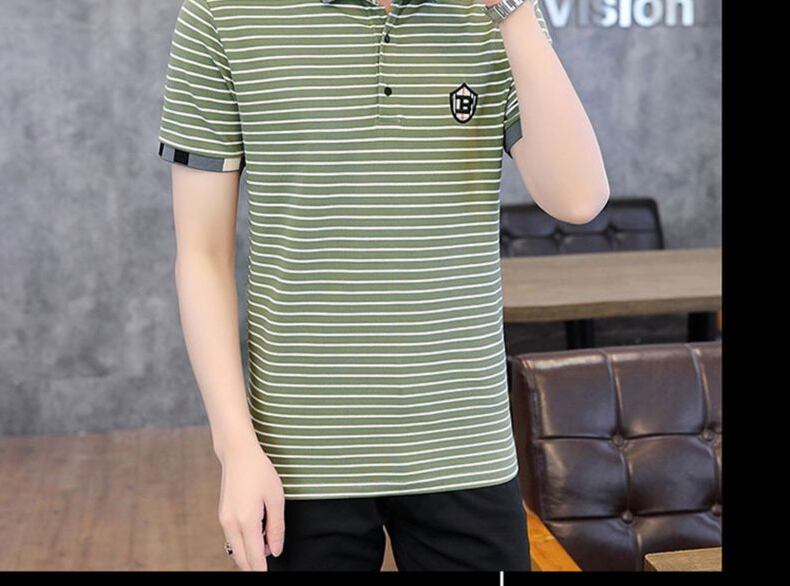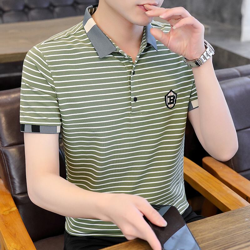 Summer short-sleeved t-shirt men's collared polo shirt lapel polo shirt business sea soul striped tide brand cotton half-sleeve レッド コットン サマー 夏物 ストライプ Tシャツ doushi47825230102