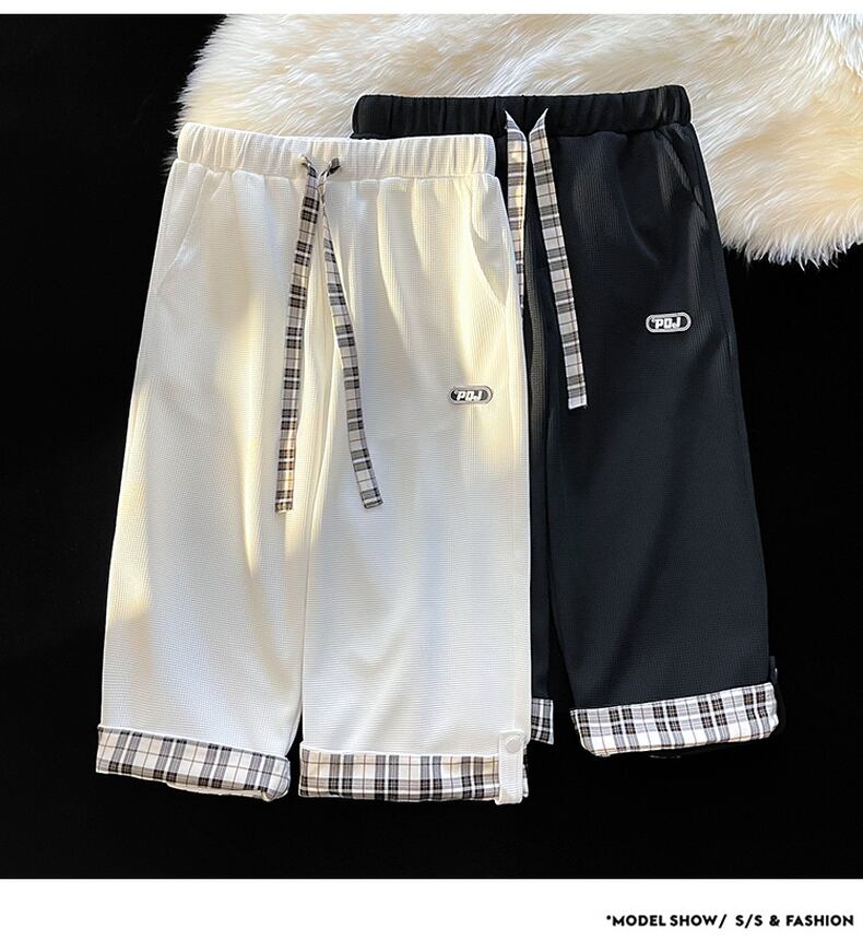 Waffle cropped pants men's summer trend loose straight ice silk men's pants tide brand handsome white casual shorts ホワイト カジュアル サマー 夏物 ショーツ ブルマー シルク doushi89178228810