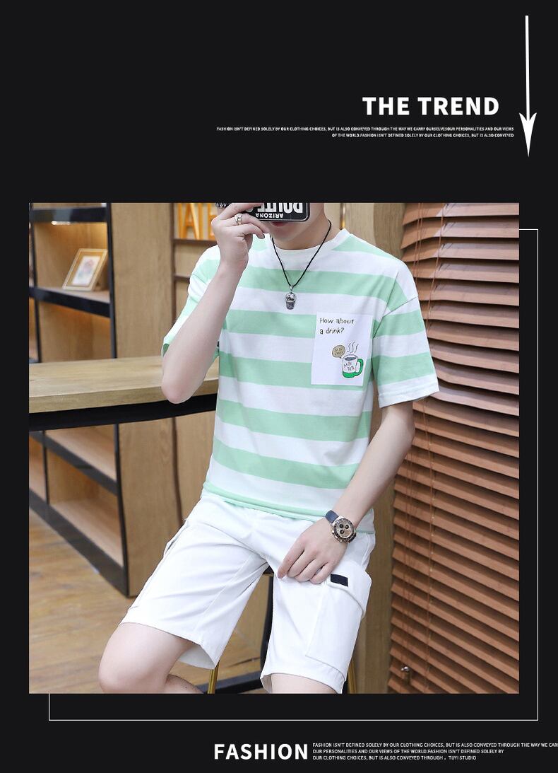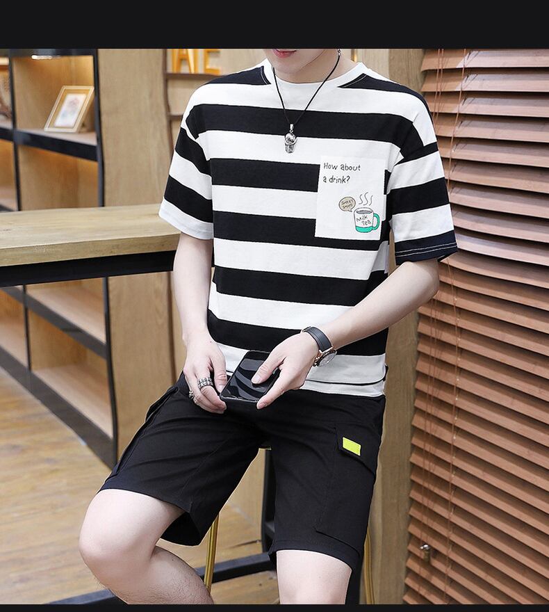 Men's short-sleeved t-shirt summer cotton men's clothing set with trendy brand handsome men's casual sports suit コットン カジュアル サマー 夏物 Tシャツ doushi43988943382