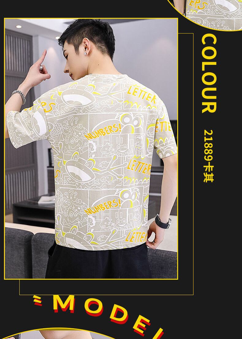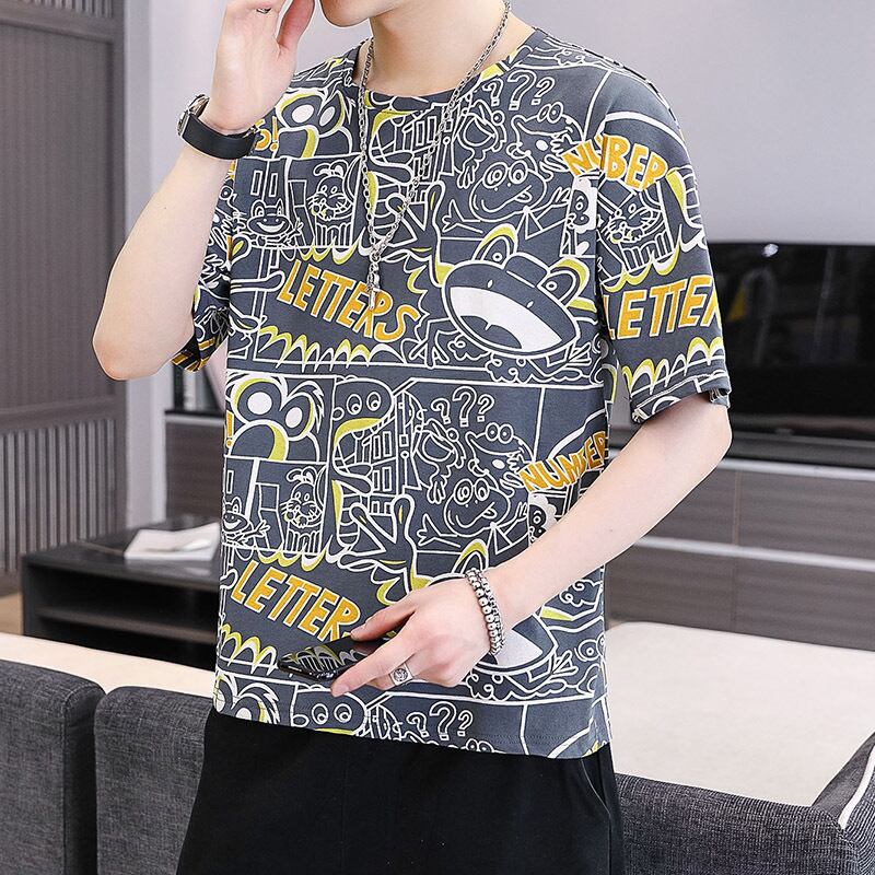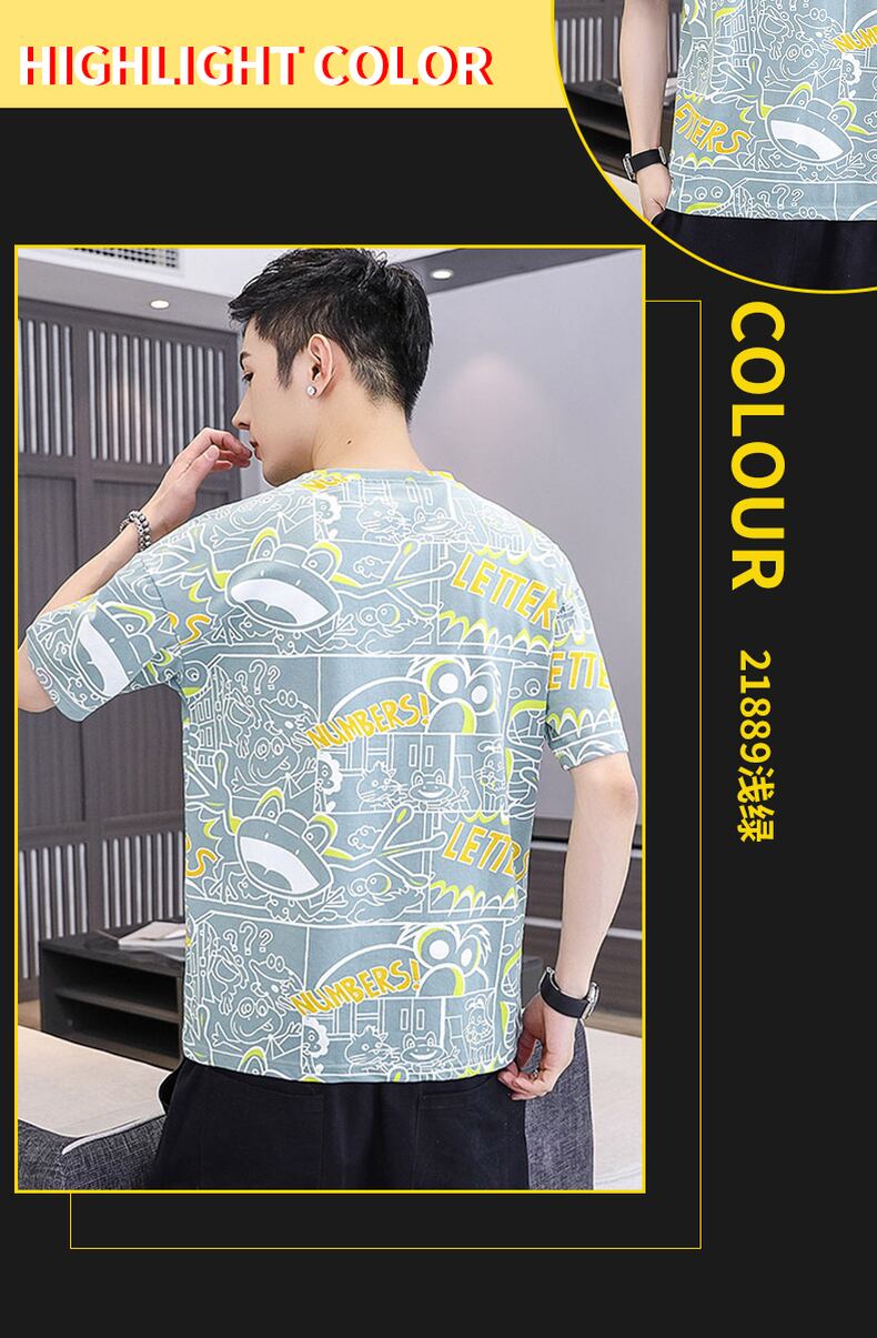 Short-sleeved t-shirt men's round neck loose tide brand t-shirt 2022 new summer ice-sensing all-match handsome top サマー 夏物 Oネック Tシャツ doushi74239111689