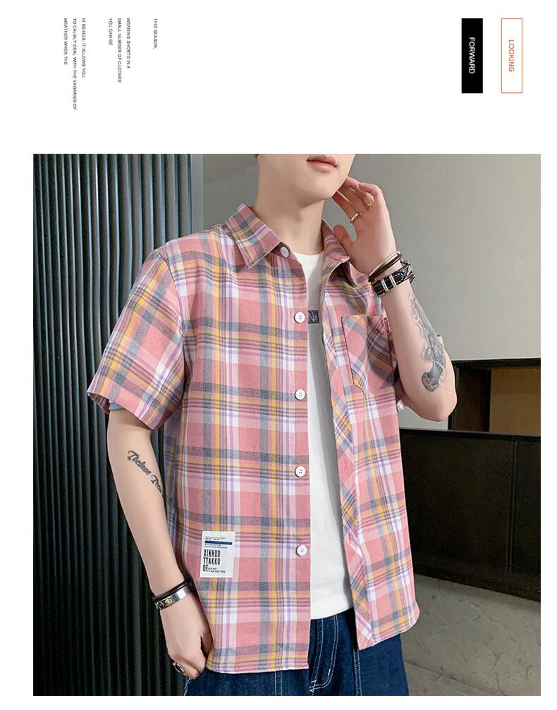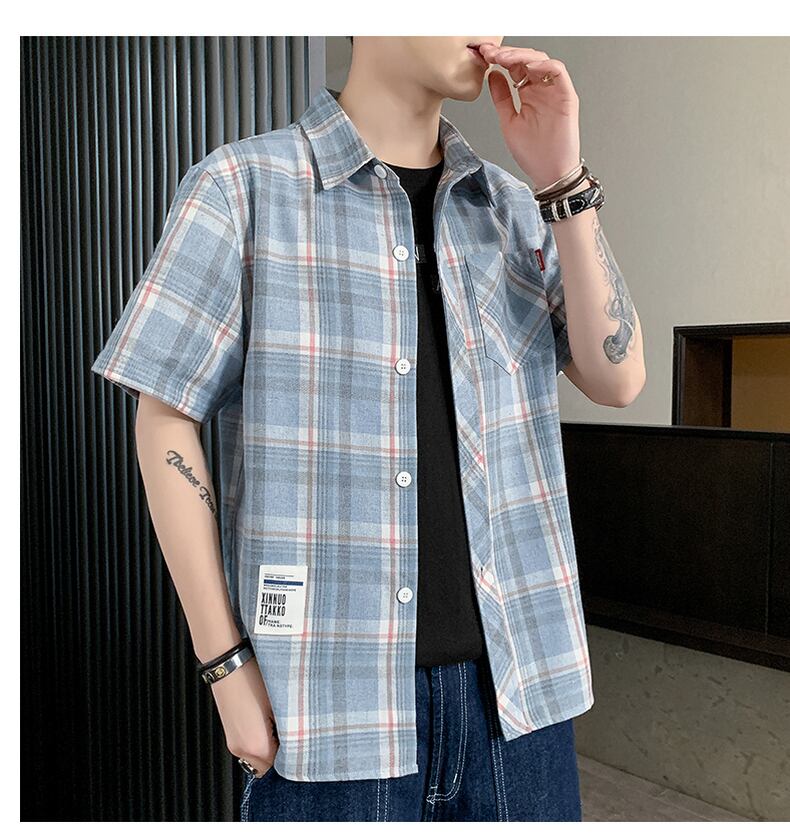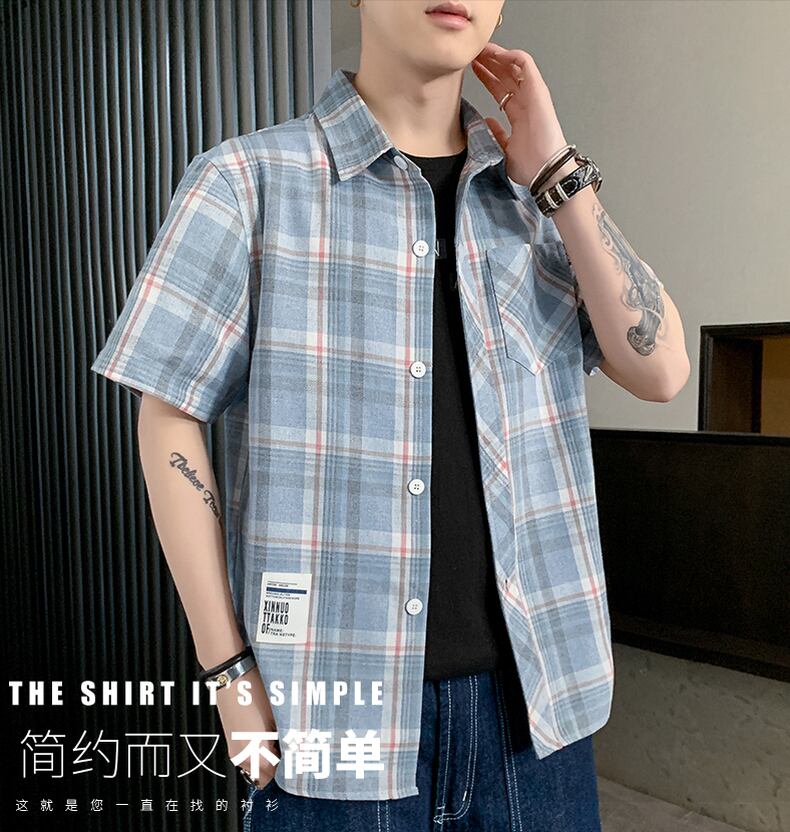 2022 new summer plaid shirt men's trendy short-sleeved shirt men's thin casual jacket men's half-sleeve inch shirt カジュアル サマー 夏物 doushi92399503871