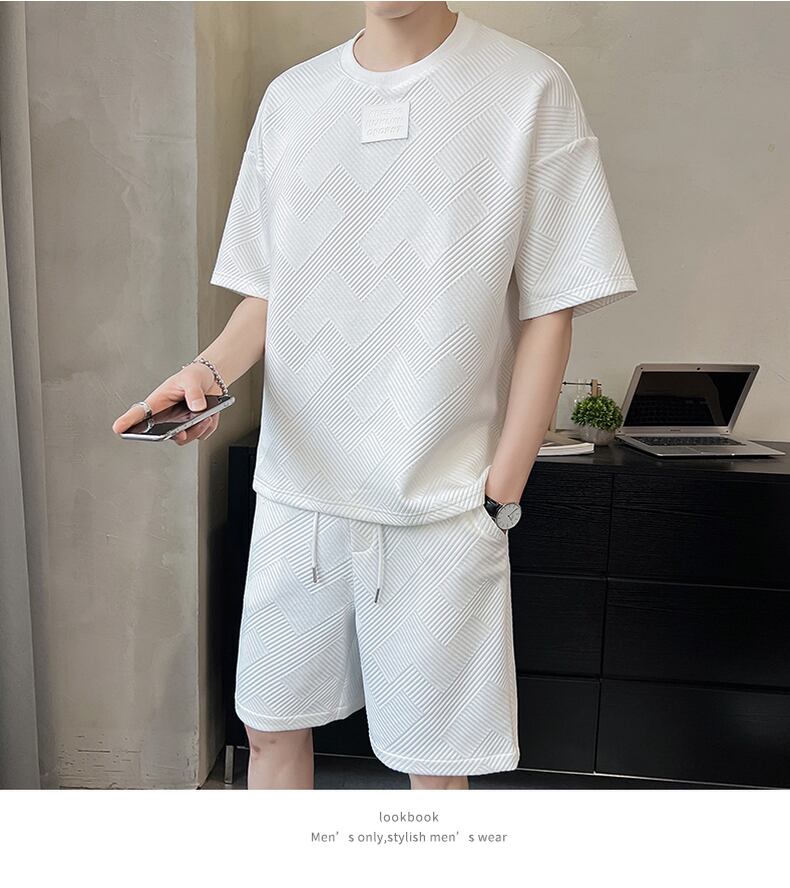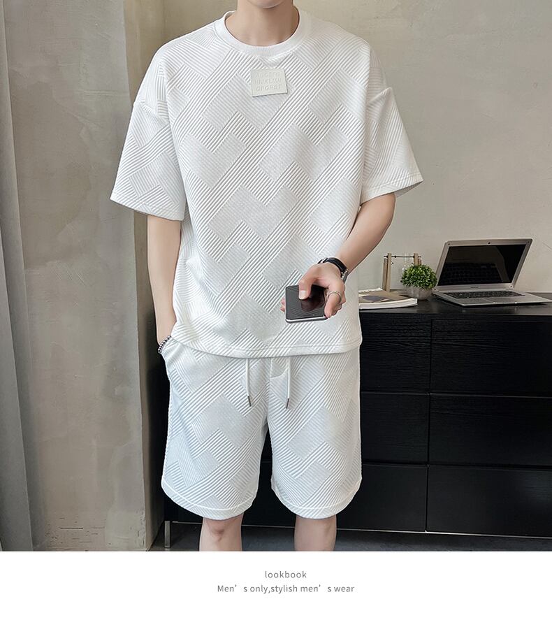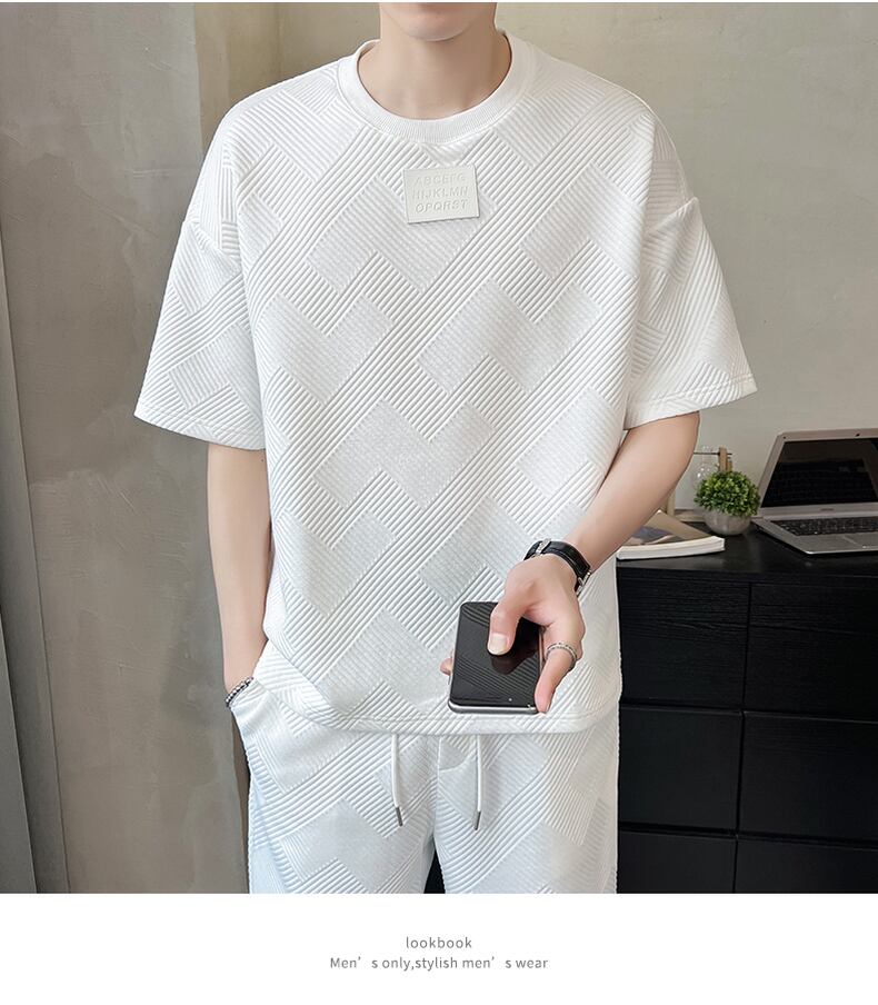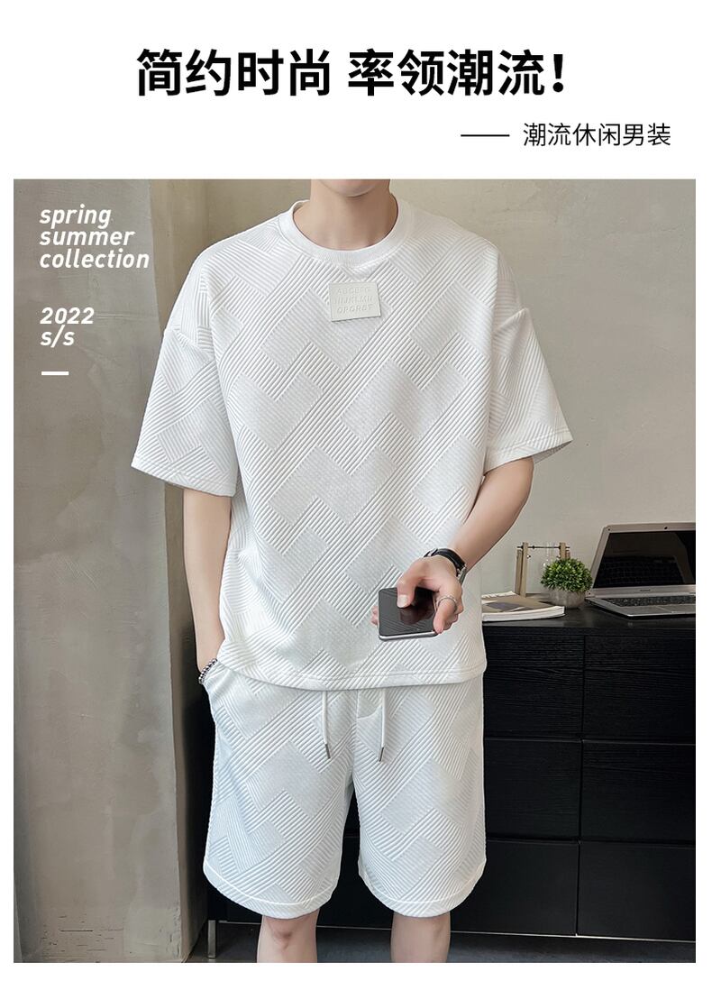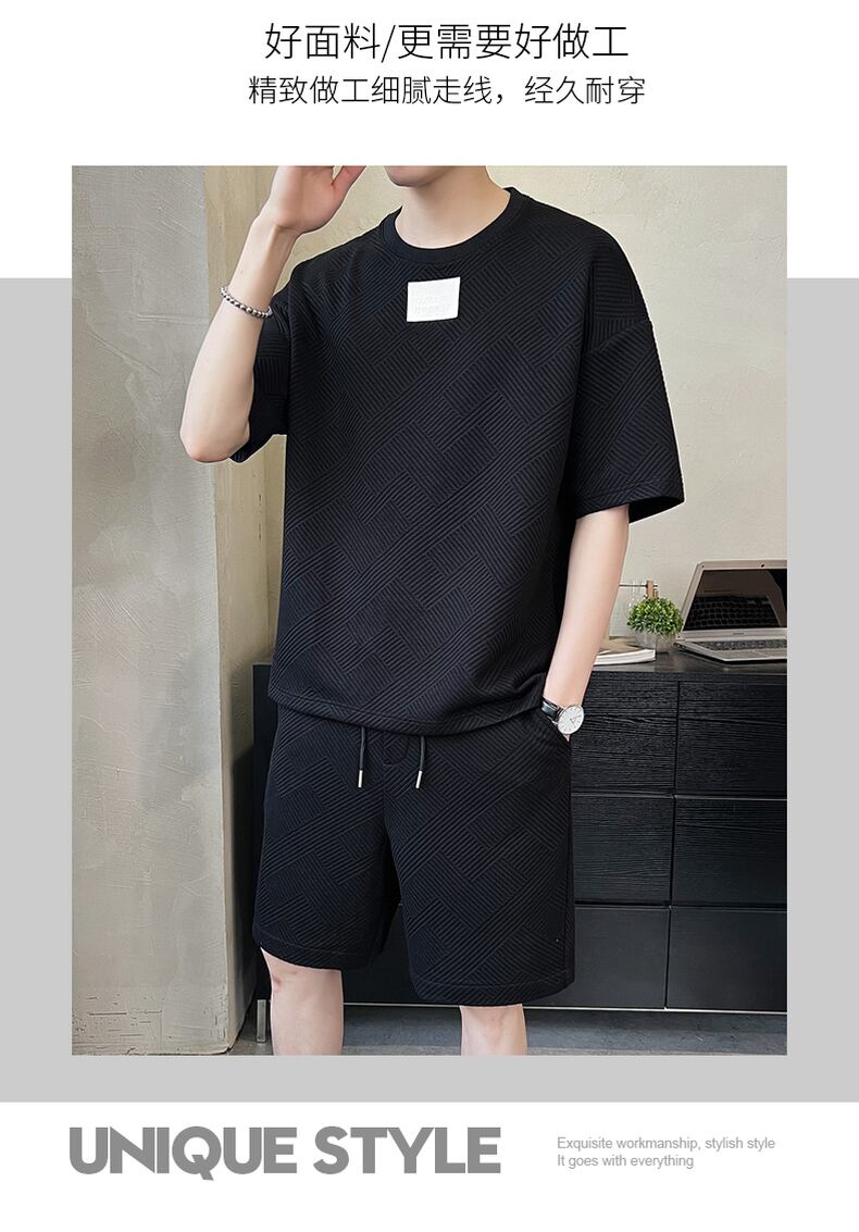 Summer men's waffle T-shirt casual suit 2022 new loose short-sleeved shorts set of youth two-piece suit カジュアル サマー 夏物 ショーツ ブルマー Tシャツ doushi32368382555