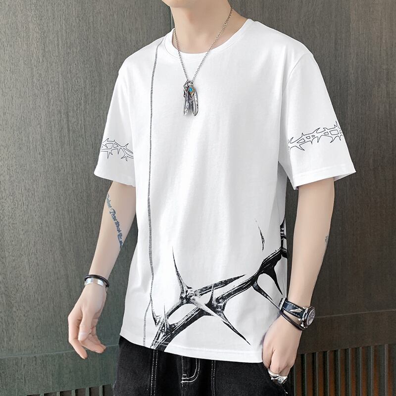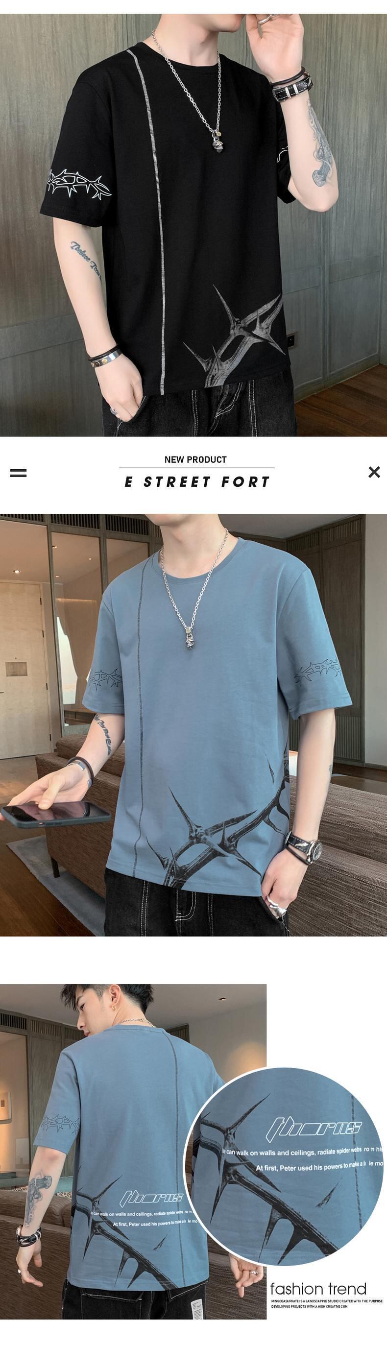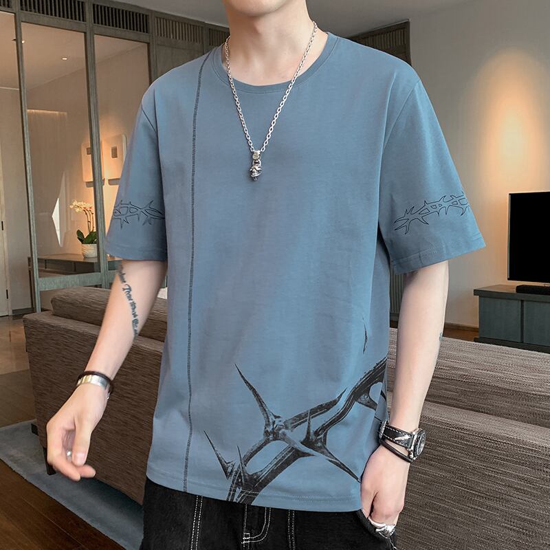 2022 summer new short-sleeved T-shirt men's cotton version of the trend Hong Kong fashion brand loose casual summer clothes コットン カジュアル サマー 夏物 Tシャツ doushi63955165048