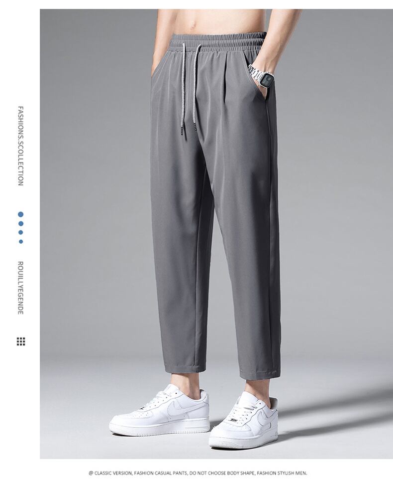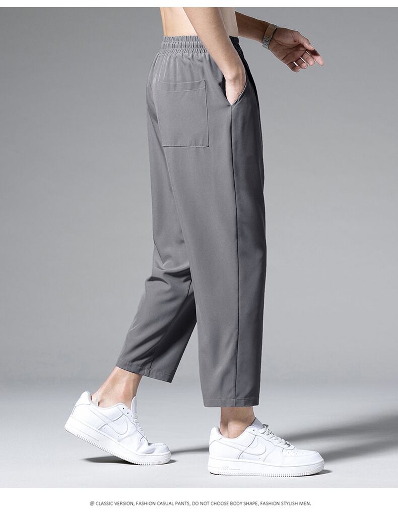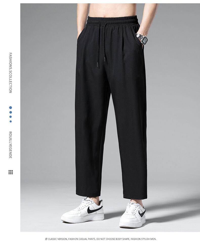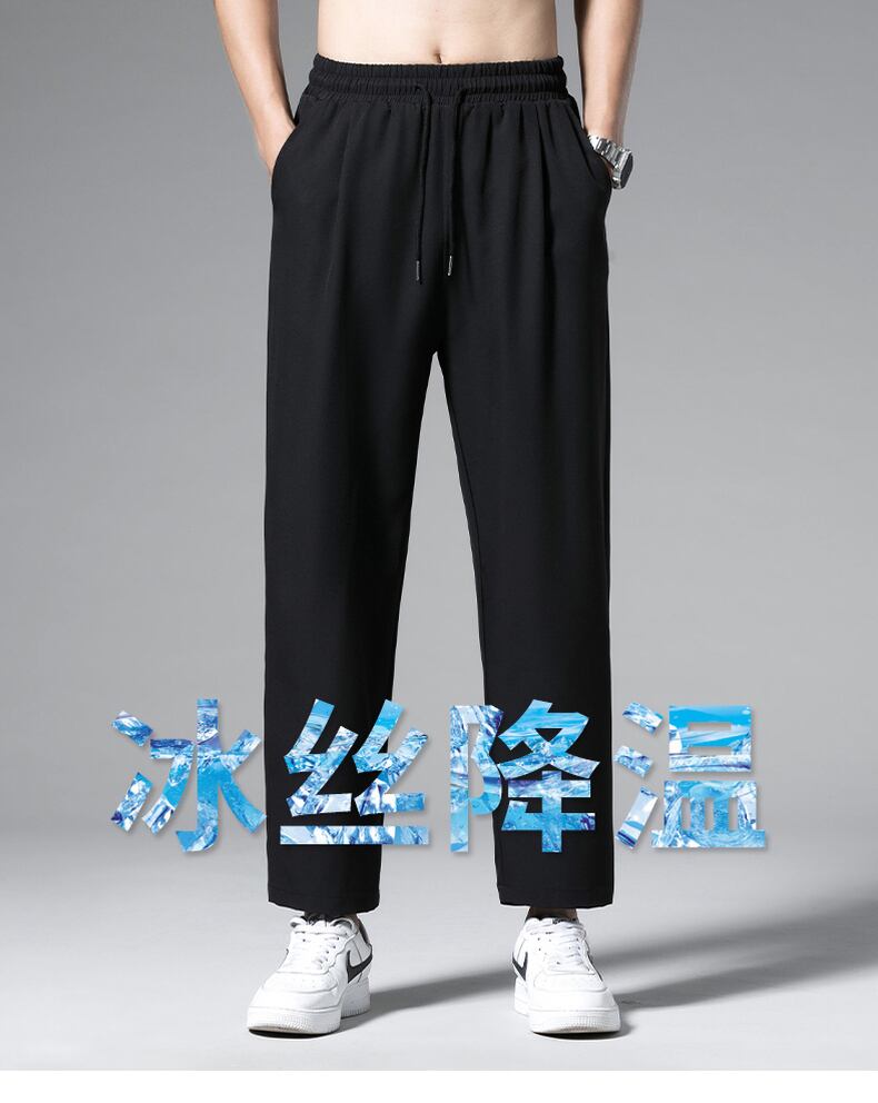 Straight ice silk pants men's nine-point wide-leg trend drape casual trousers summer thin loose suit men's pants カジュアル サマー 夏物 シルク doushi97584686773