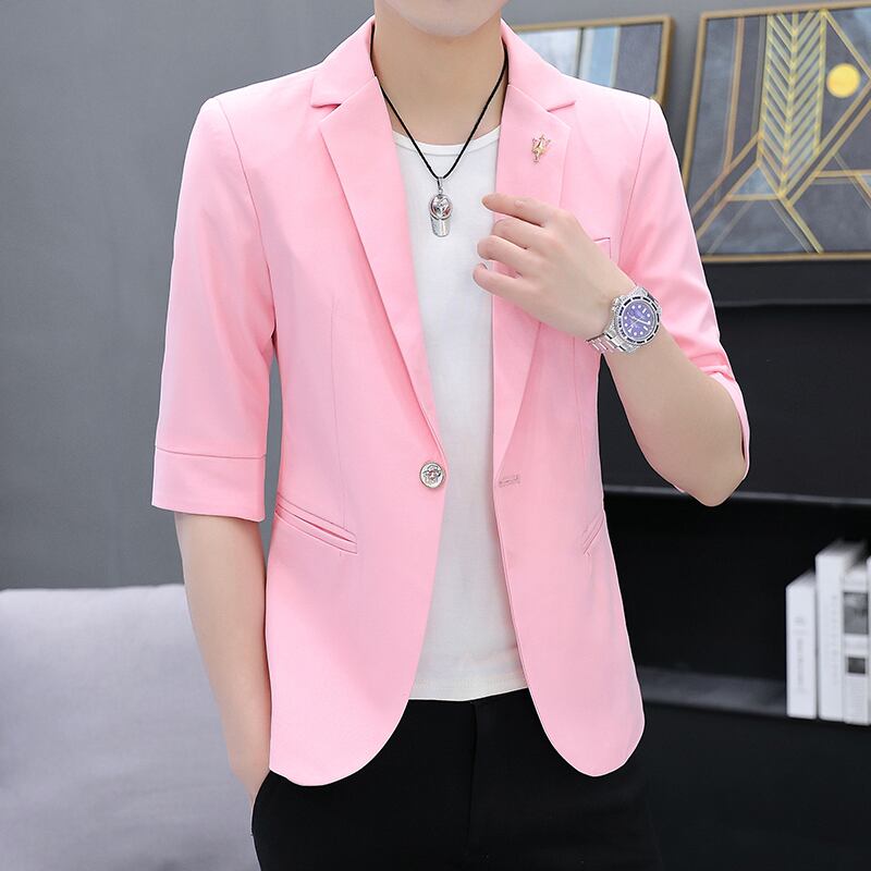 Summer three-quarter-sleeve suit men's casual version of the medium-sleeved small suit trend thin short-sleeved jacket slim fit sunscreen カジュアル サマー 夏物 スリム doushi32573872998
