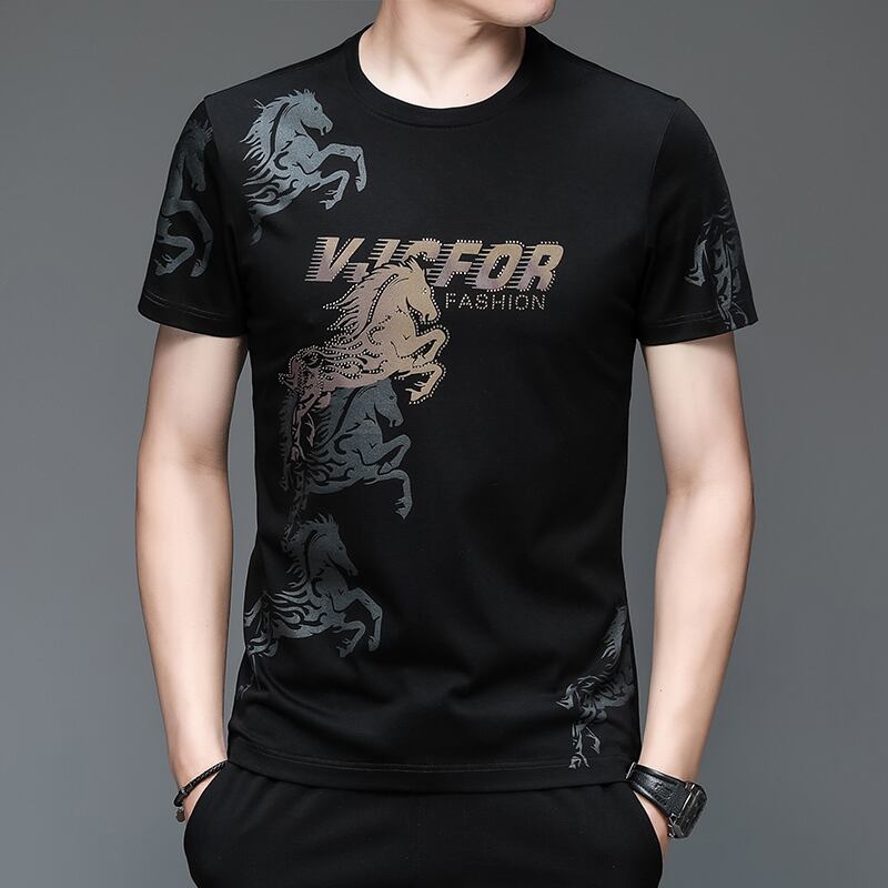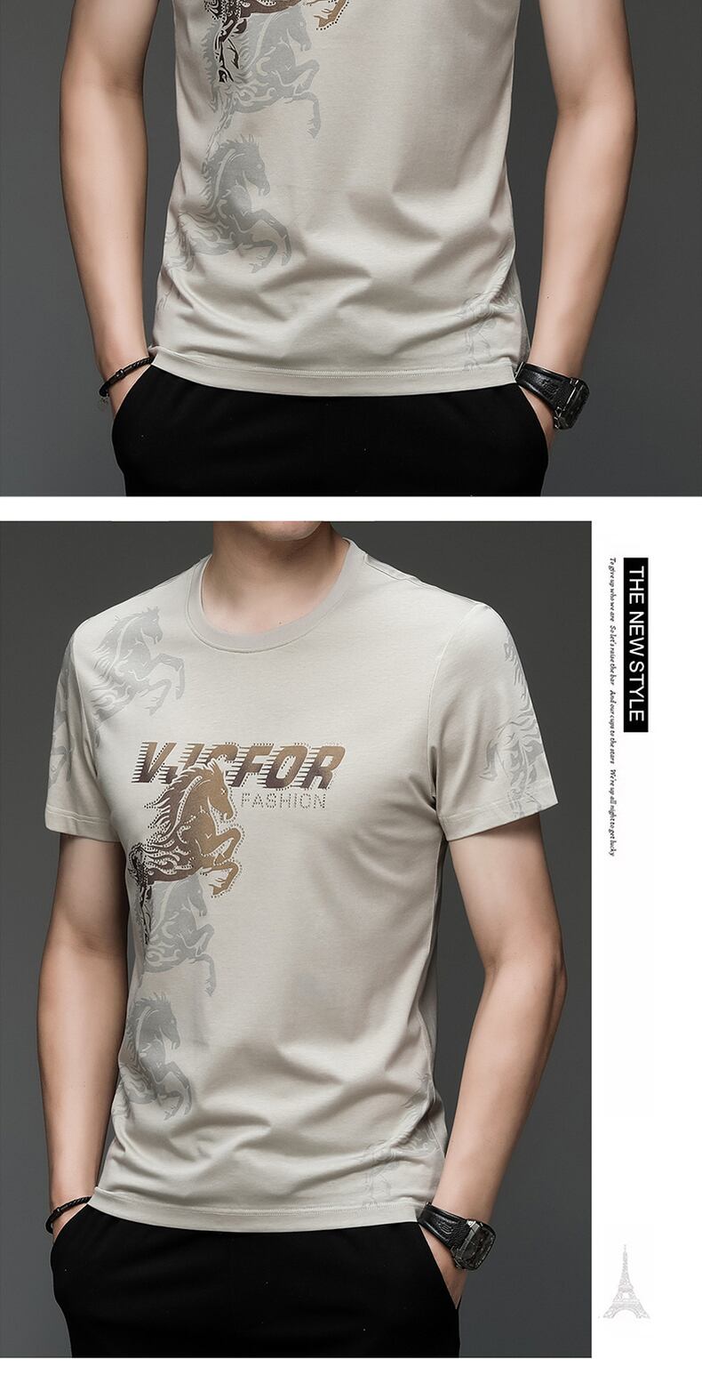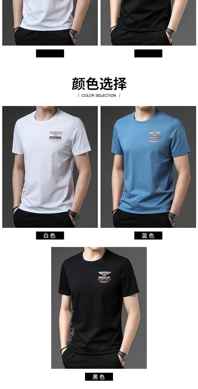 Summer short-sleeved t-shirt men's trend ice silk thin section business casual half-sleeved body high-end clothes slim top カジュアル サマー 夏物 スリム シルク Tシャツ doushi45286285542