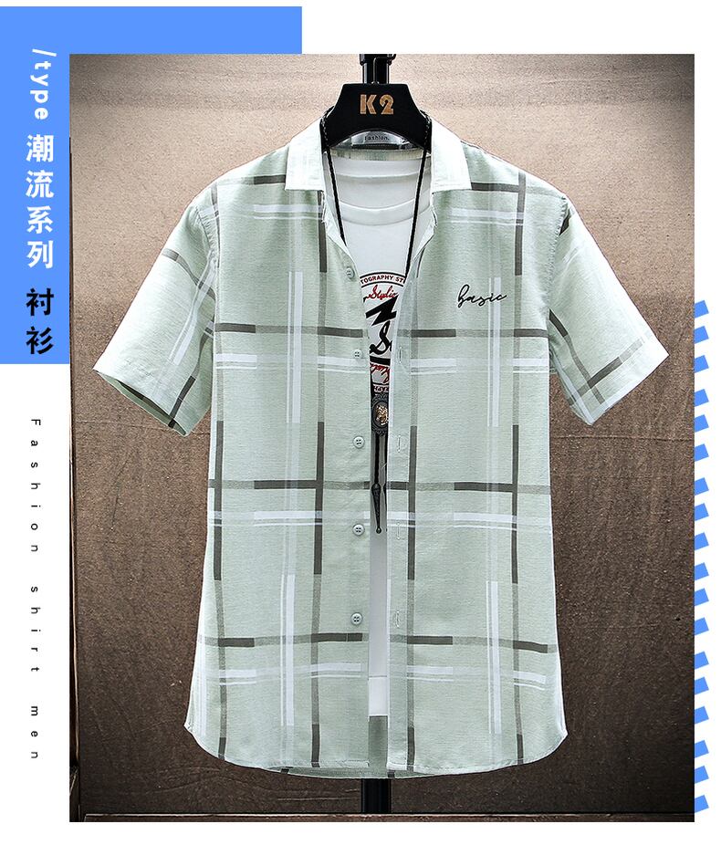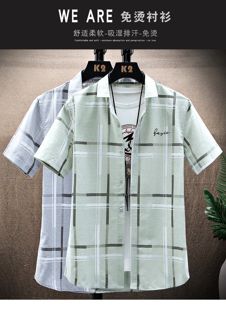 2022 new plaid shirt men's short-sleeved summer thin casual jacket inch shirt men's half-sleeved shirt trendy men's clothing カジュアル サマー 夏物 doushi37224717394