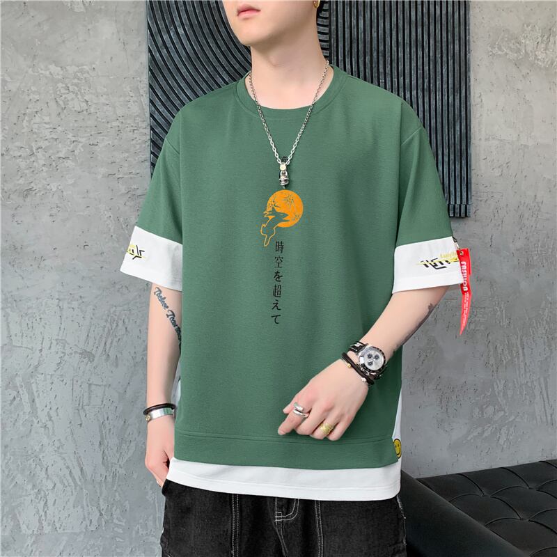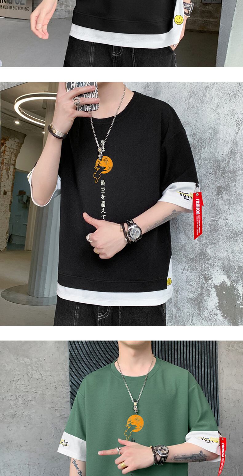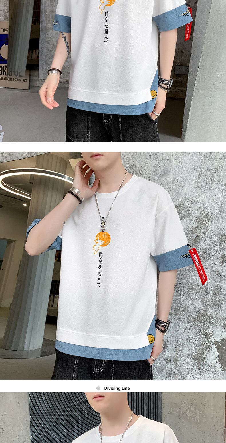 Teenage short-sleeved male big boy T-shirt junior high students summer fashion brand suit men's half-sleeved shirt handsome サマー 夏物 Tシャツ doushi76506199836
