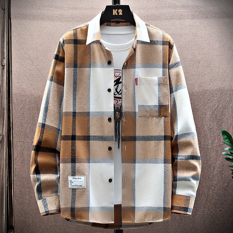 Plaid shirt men's summer 2022 new casual loose shirt men's long-sleeved thin jacket youth trend inch shirt ロング カジュアル サマー 夏物 doushi46460402217