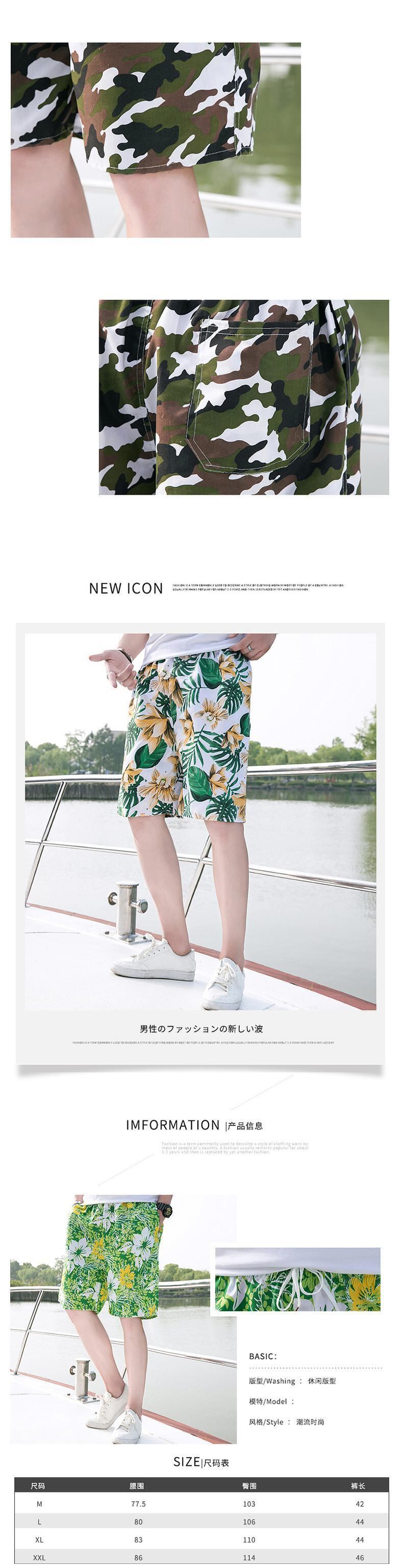 Beach pants men's seaside vacation loose couple five points large size flower pants trendy pants summer shorts big pants 大きめサイズ サマー 夏物 ビーチ ショーツ ブルマー フラワーデザイン doushi37449885973