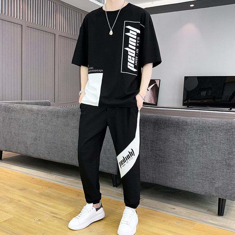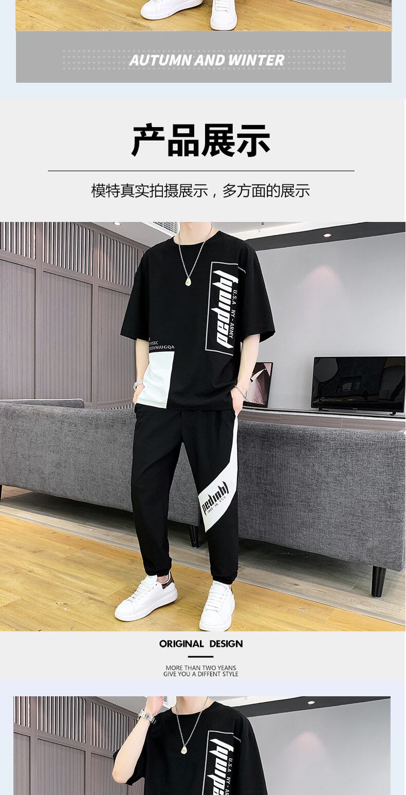 Short-sleeved suit men's summer T-shirt casual sports two-piece trend men's clothing 2022 new set of clothes handsome カジュアル サマー 夏物 Tシャツ doushi50160305887