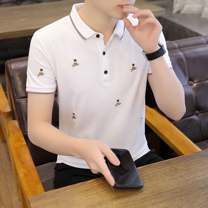 2022 summer new Paul polo shirt men's short-sleeved bear embroidery trend lapel slim t-shirt clothes 刺繍 サマー 夏物 スリム Tシャツ doushi92193275788