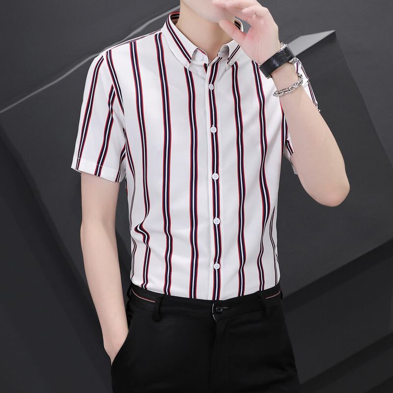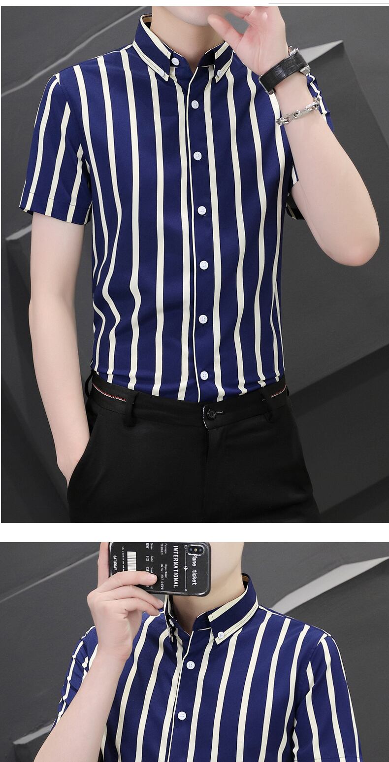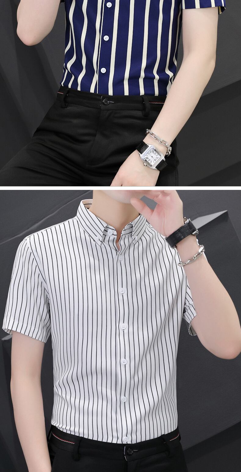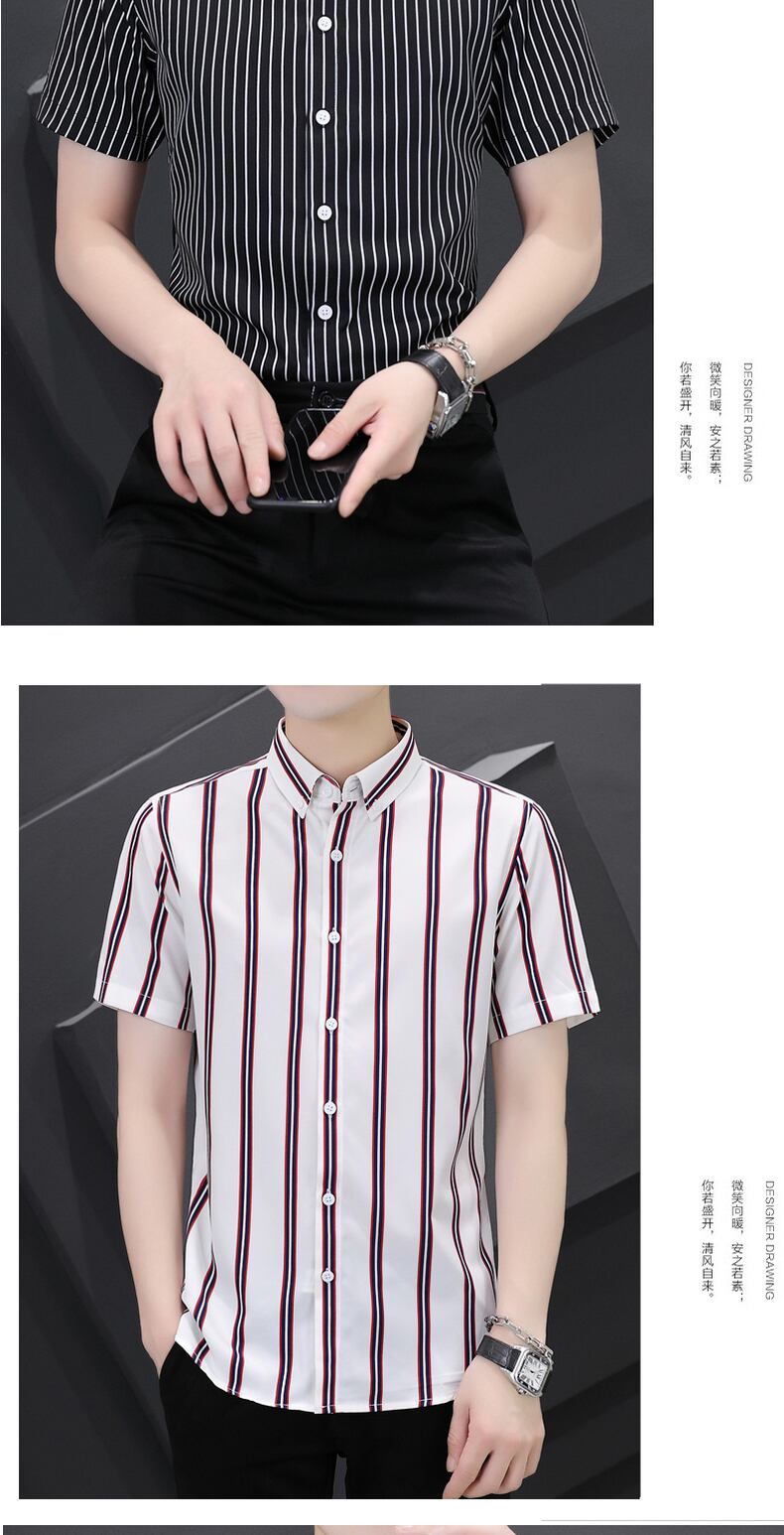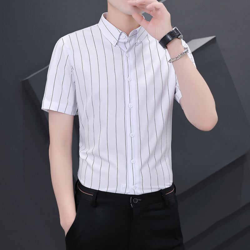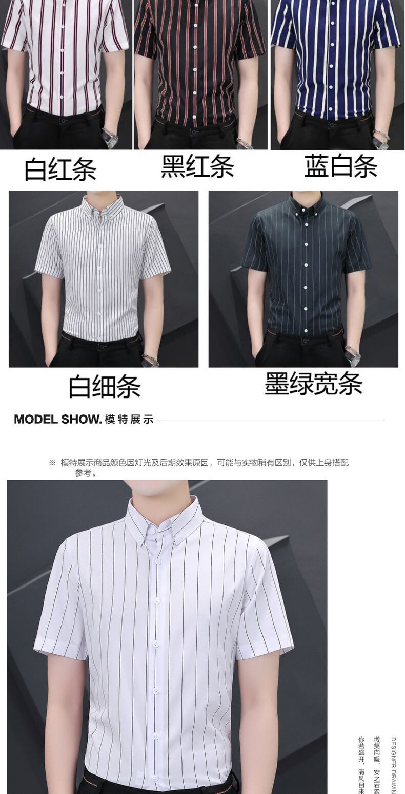 Vertical striped short-sleeved shirt men's summer thin elastic non-iron shirt business casual all-match shirt summer カジュアル エラスティック 伸縮 サマー 夏物 ストライプ doushi692823595