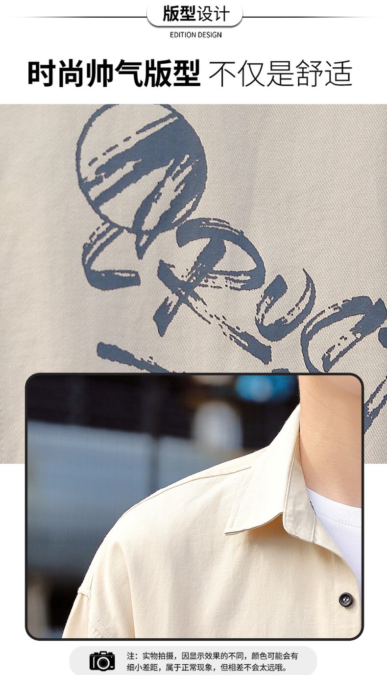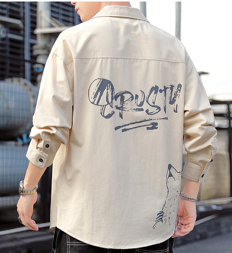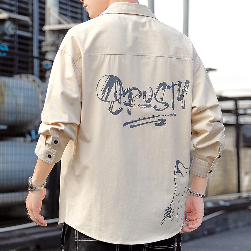 Cotton shirt men's long-sleeved summer thin coat loose Hong Kong style design print top clothes men's casual shirt ロング コットン カジュアル サマー 夏物 doushi64038110266
