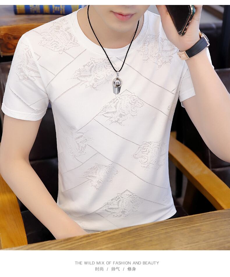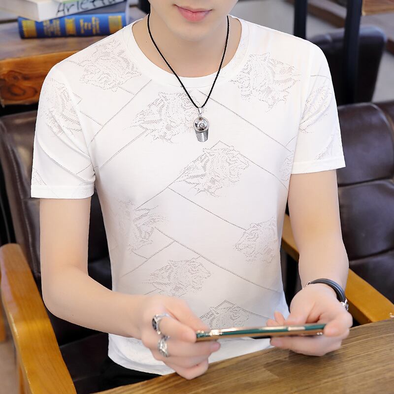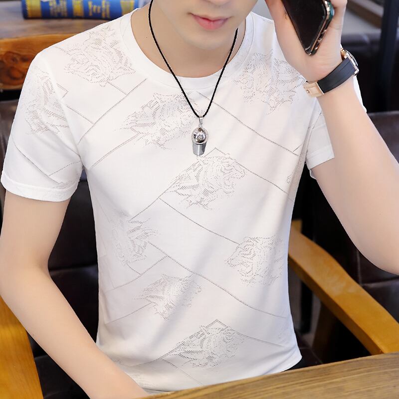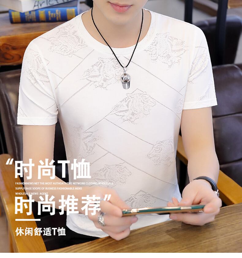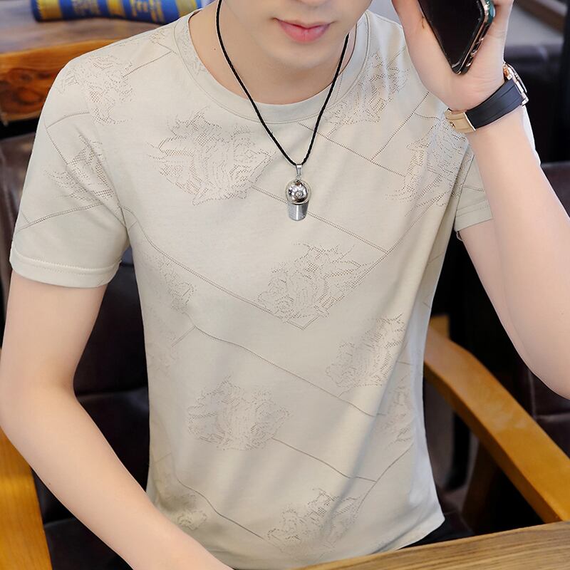 Summer new men's short-sleeved t-shirt ice silk round neck bottoming shirt youth trend self-cultivation half-sleeved top clothes t-shirt サマー 夏物 Oネック シルク Tシャツ doushi24381449289