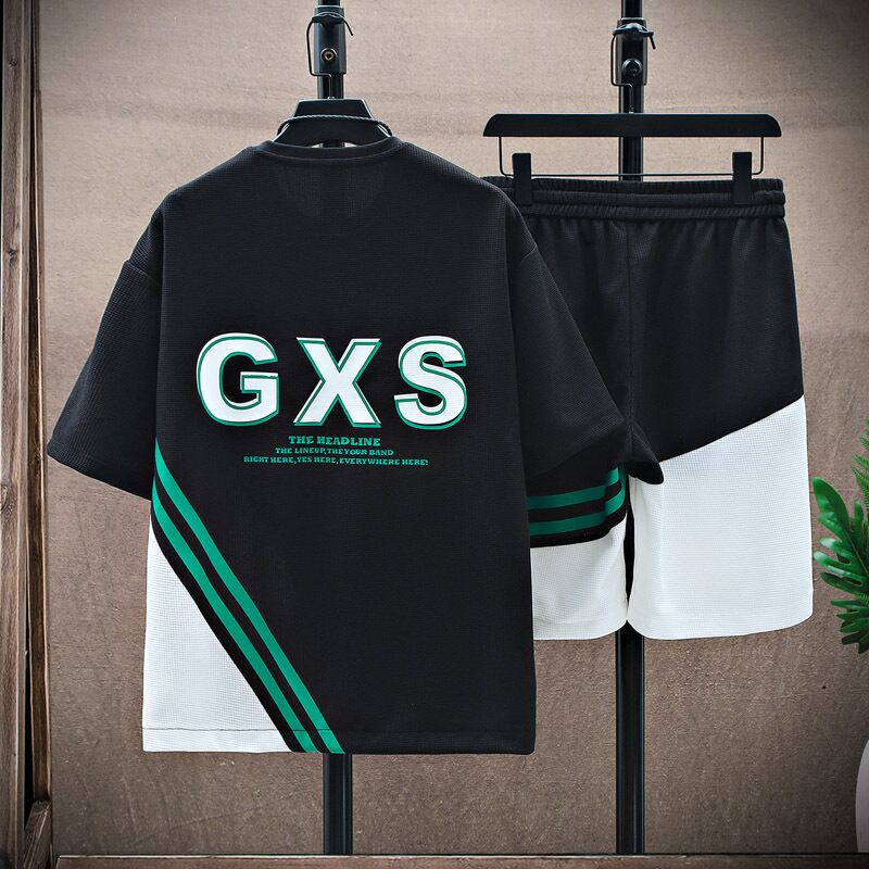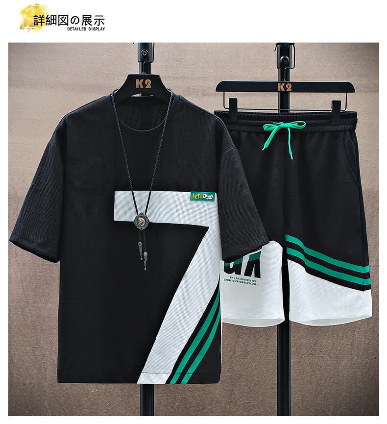 Waffle short-sleeved T-shirt men's summer youth tide brand sports basketball t-shirt suit youth student summer clothes サマー 夏物 Tシャツ doushi34969525600