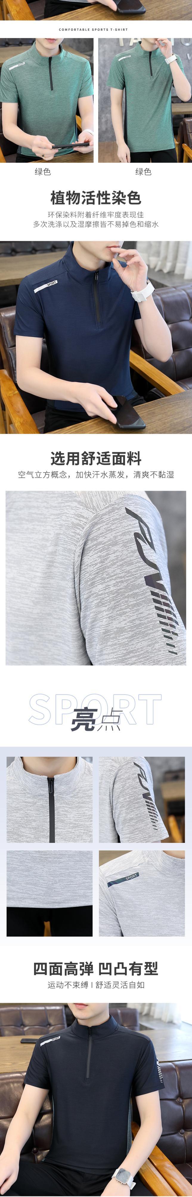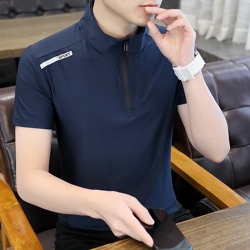 Ice silk t-shirt men's new short-sleeved summer stand-up collar slippery high-end light luxury half zipper quick-drying trend t-shirt men サマー 夏物 シルク Tシャツ doushi11636921336