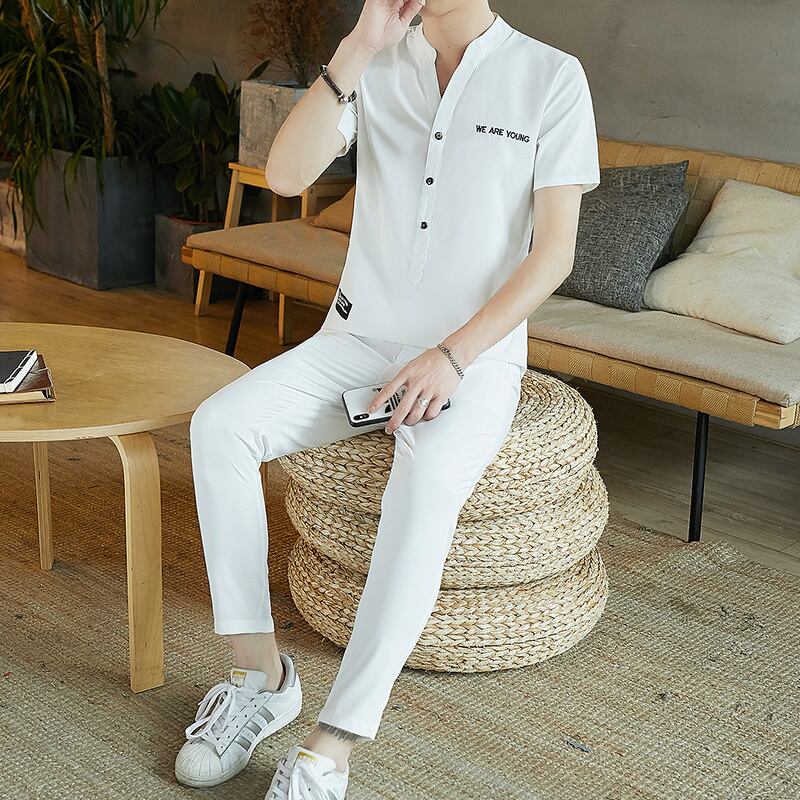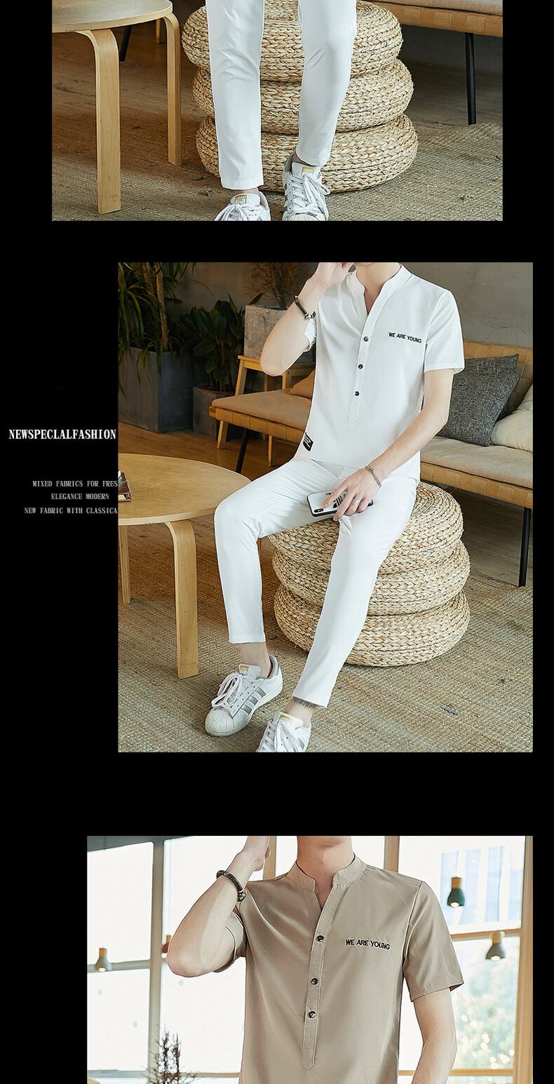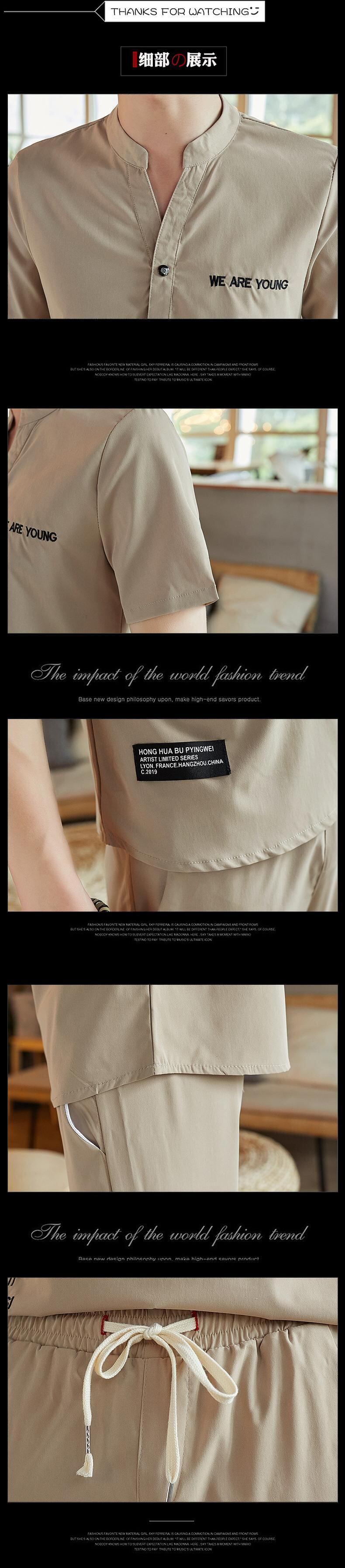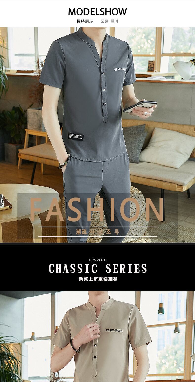 Ice silk short-sleeved t-shirt suit men's summer 2022 new casual handsome thin V-neck POLO shirt with a set カジュアル サマー 夏物 Vネック シルク Tシャツ doushi78430172834