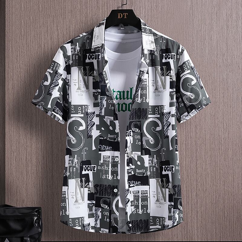 Short-sleeved shirt men's summer thin section quick-drying retro printed shirt men's tide brand ruffian cool cool casual inch shirt レトロ プリント カジュアル サマー 夏物 doushi88861463698