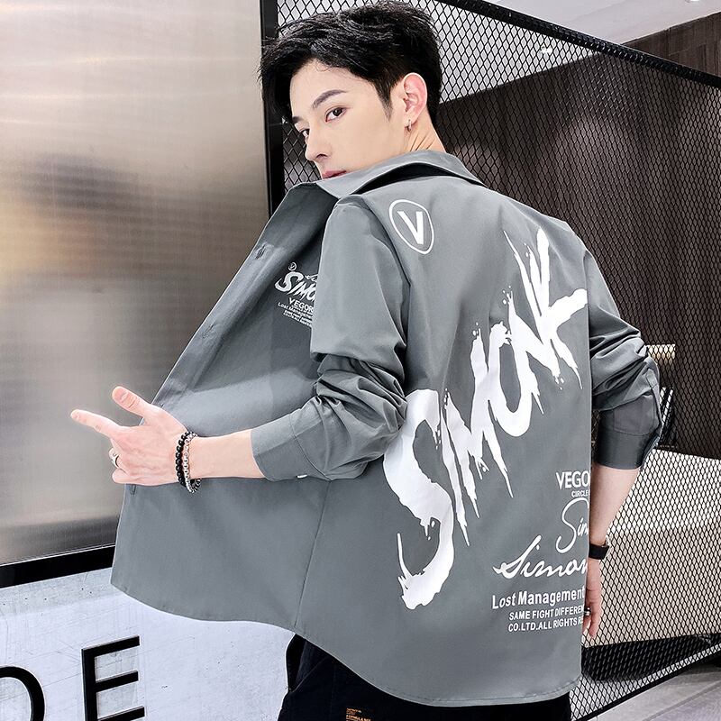 Long-sleeved shirt jacket men's summer tide brand 2022 new version of the trend ruffian handsome casual fashion men's shirt ロング カジュアル サマー 夏物 doushi13298295767