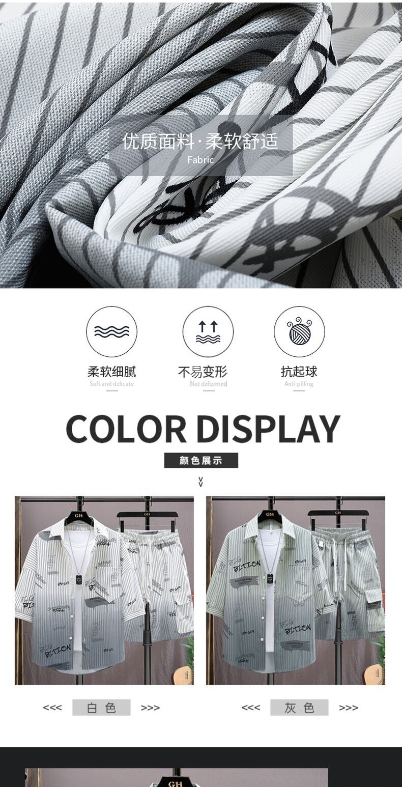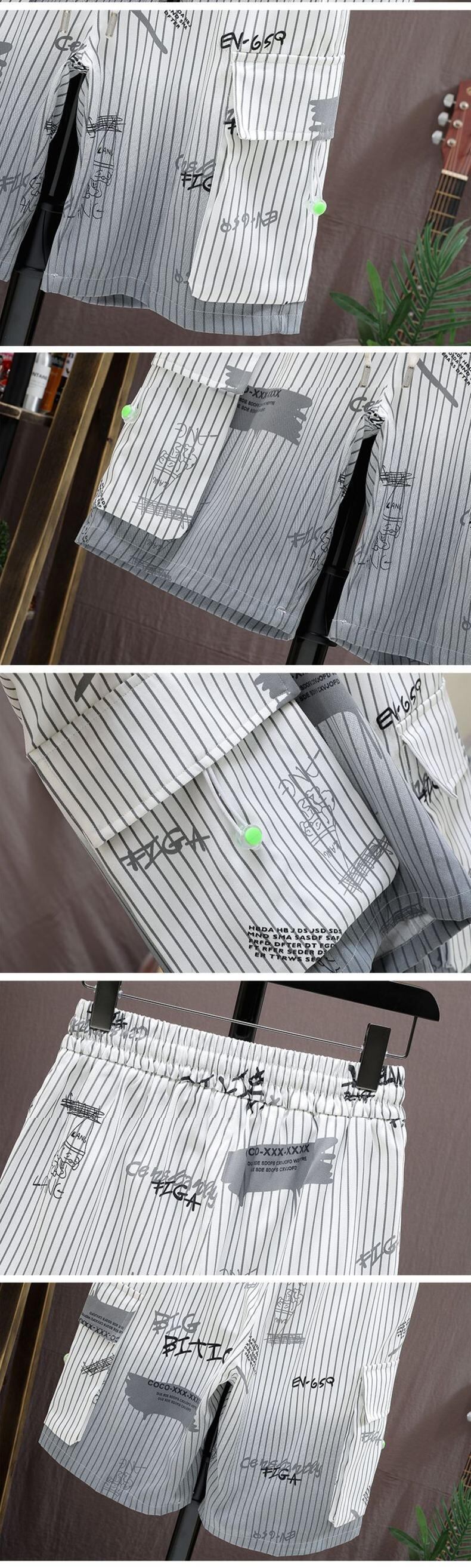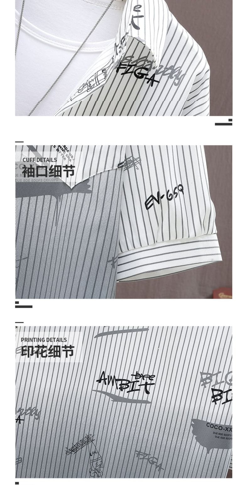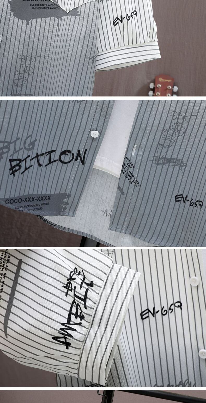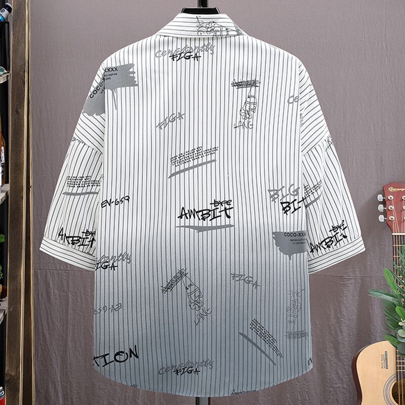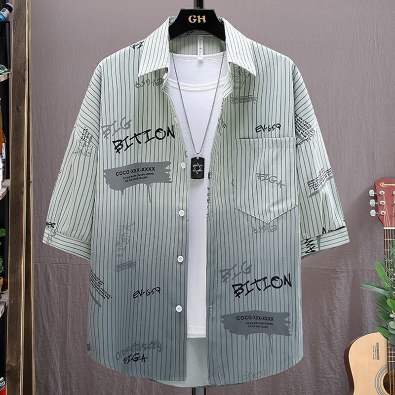 Summer short-sleeved shirt men's striped gradient ice silk casual three-quarter sleeve shirt men's printed ruffian handsome jacket men プリント カジュアル サマー 夏物 ストライプ シルク doushi41824542302