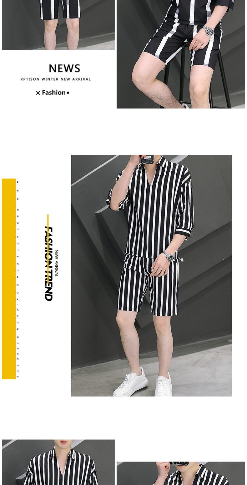 Summer three-quarter sleeve shirt men's trendy and handsome set with mature ruffian handsome ice silk short-sleeved t-shirt suit casual カジュアル サマー 夏物 シルク Tシャツ doushi21381967196