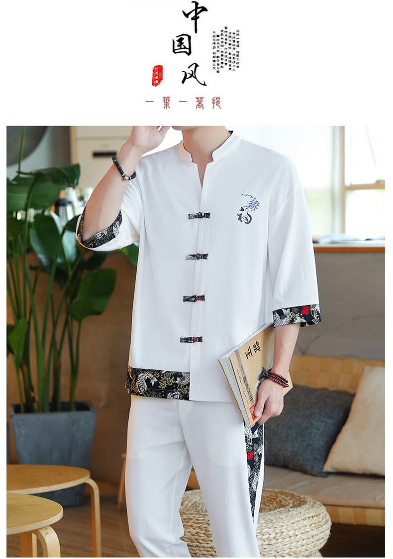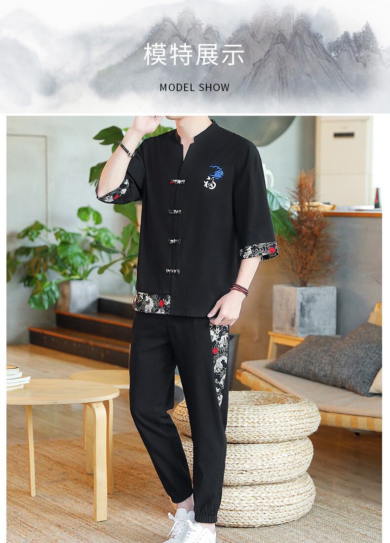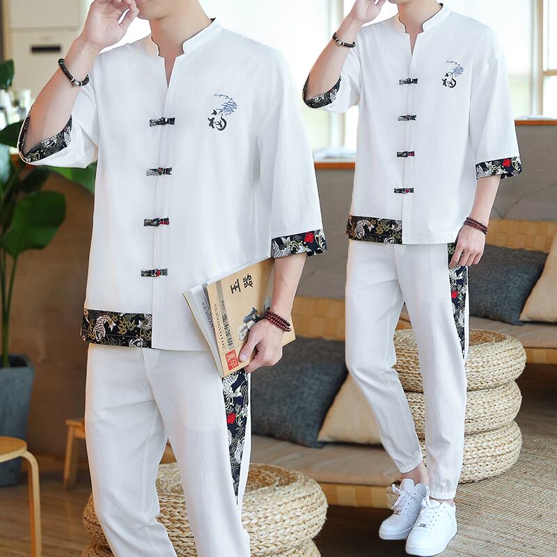 suit men's summer thin section trend Chinese style Tang suit shirt set with handsome ice silk two-piece suit サマー 夏物 シルク doushi96402633482