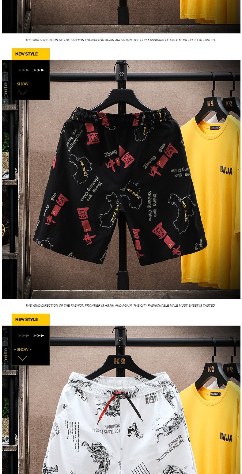 Flower shorts men's summer tide brand ins casual large size beach pants ice silk big pants trend outside wear 5 five-point pants カジュアル 大きめサイズ サマー 夏物 ビーチ ショーツ ブルマー シルク フラワーデザイン doushi40216589874