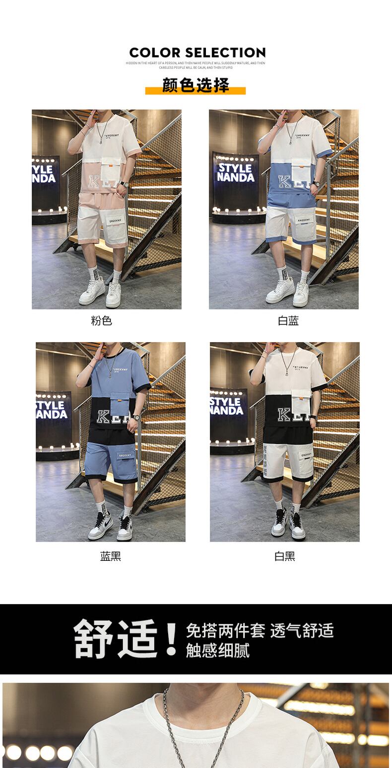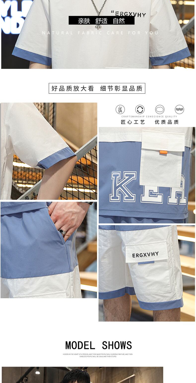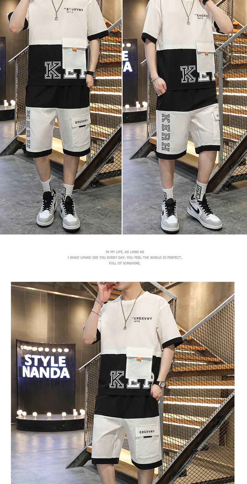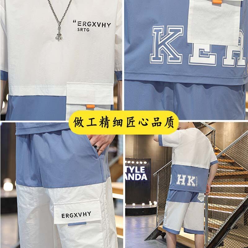 Summer ice silk suit men's 2022 men's short-sleeved T-shirt shorts trendy casual teenager handsome set カジュアル サマー 夏物 ショーツ ブルマー シルク Tシャツ doushi26712337045