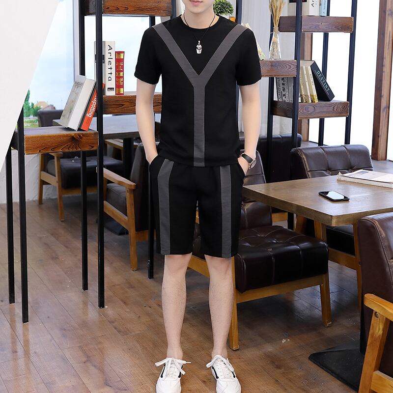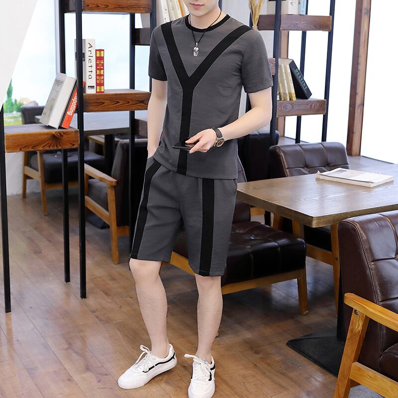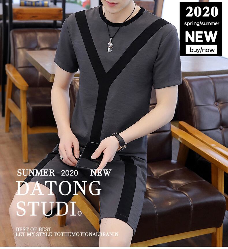 Short-sleeved suit men's 2022 new t-shirt summer shorts with a set of trendy men's ice silk casual clothes カジュアル サマー 夏物 ショーツ ブルマー シルク Tシャツ doushi92717949630