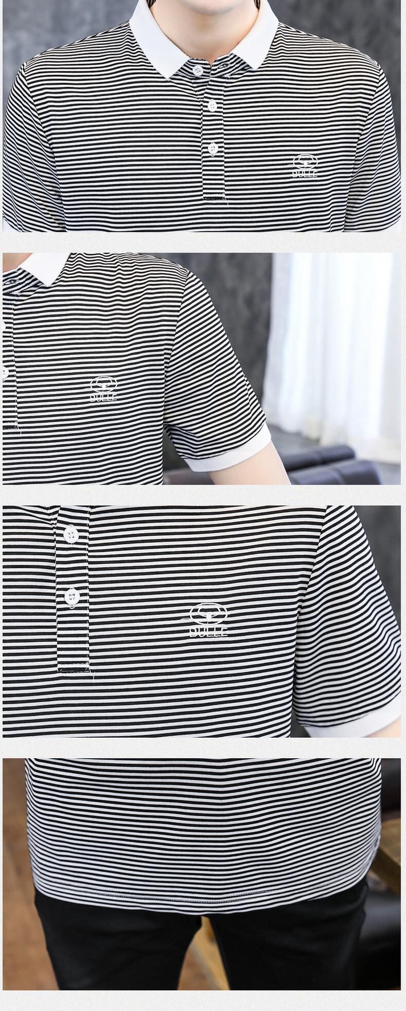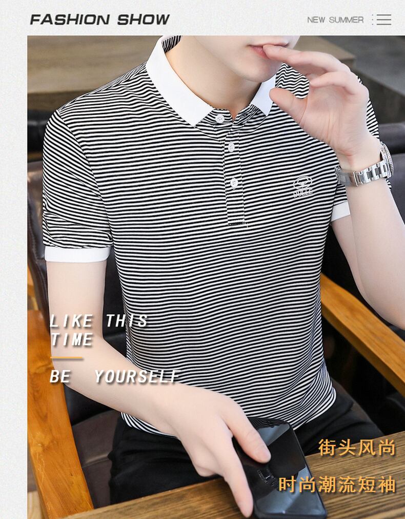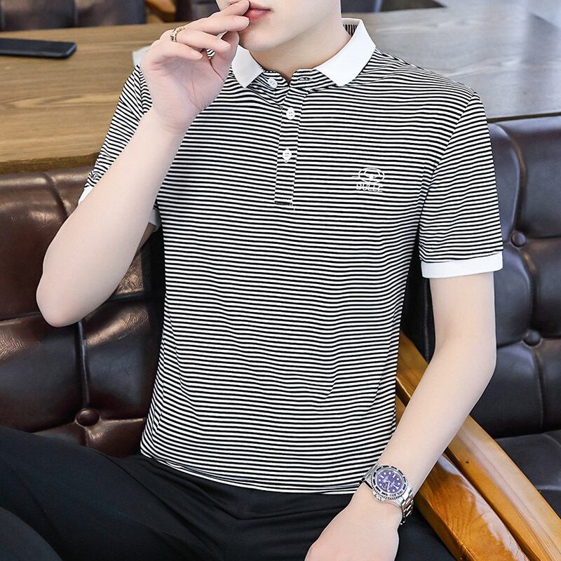 Men's short-sleeved t-shirt summer high-end lapel black and white striped t-shirt men's half-sleeved polo shirt tide brand summer thin T ホワイト ブラック サマー 夏物 ストライプ Tシャツ doushi41833399732