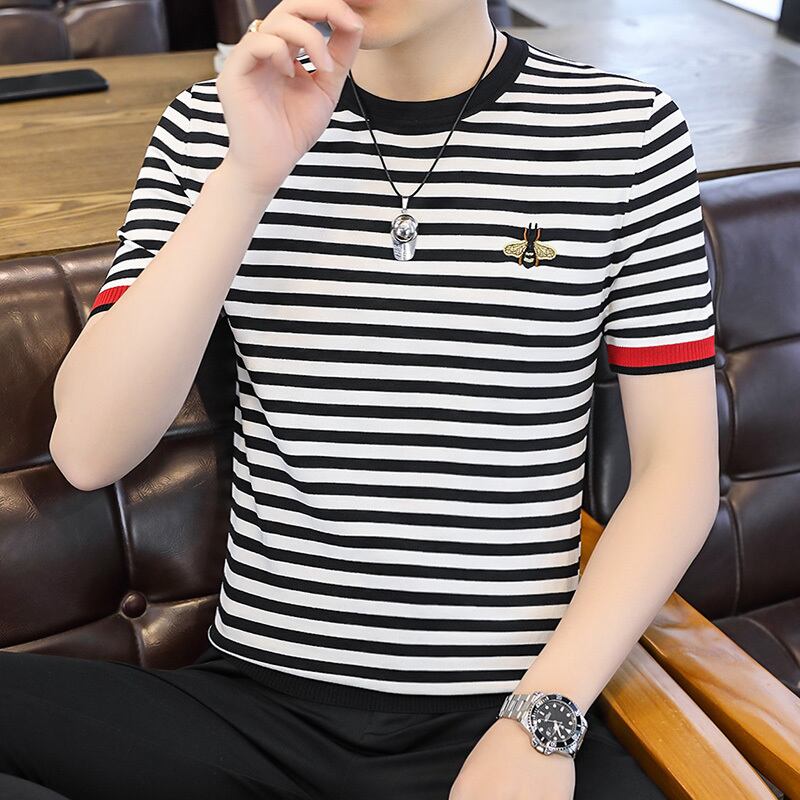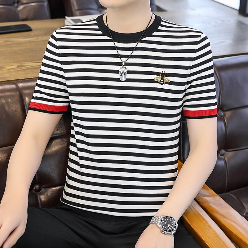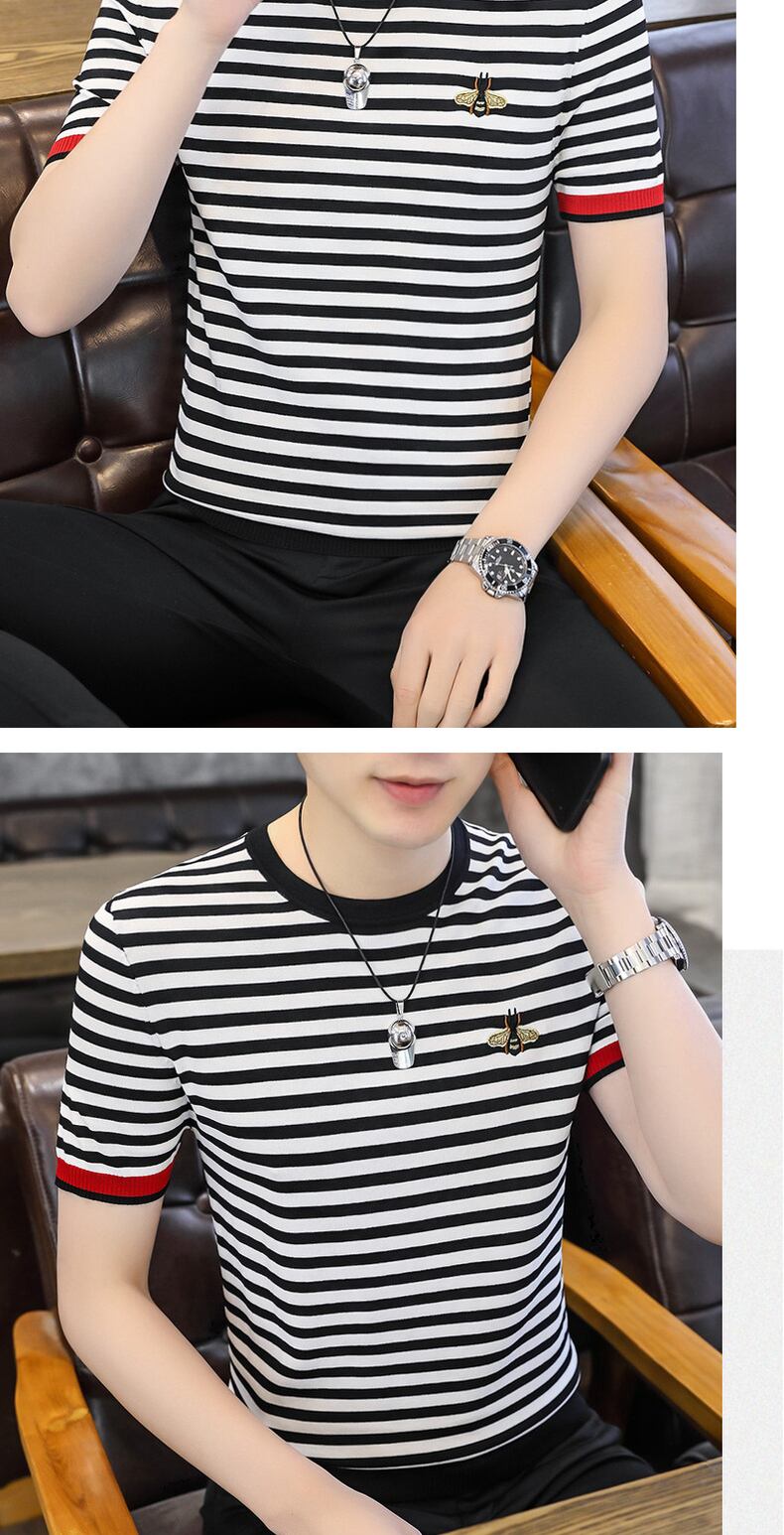 Men's short-sleeved t-shirt 2022 summer new round neck striped t-shirt tide brand sea soul top clothes thin shirt サマー 夏物 Oネック ストライプ Tシャツ doushi25739311145