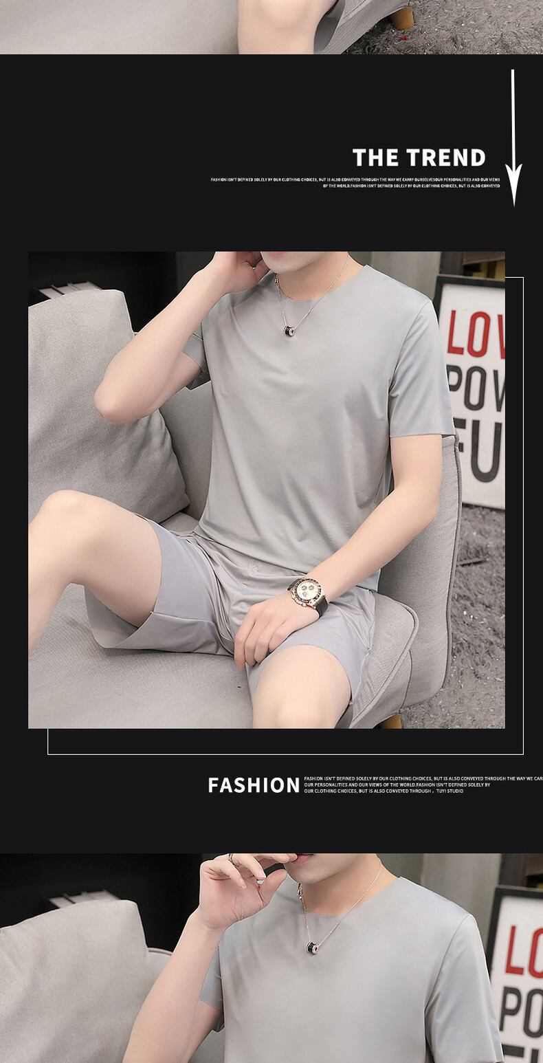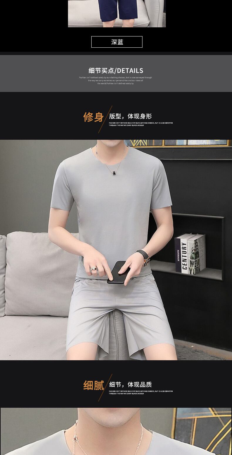 Ice silk suit men's summer shorts shorts men's t-shirt short-sleeved simple seamless modal pajamas summer thin section サマー 夏物 ショーツ ブルマー シルク Tシャツ doushi54018387612