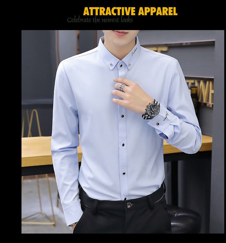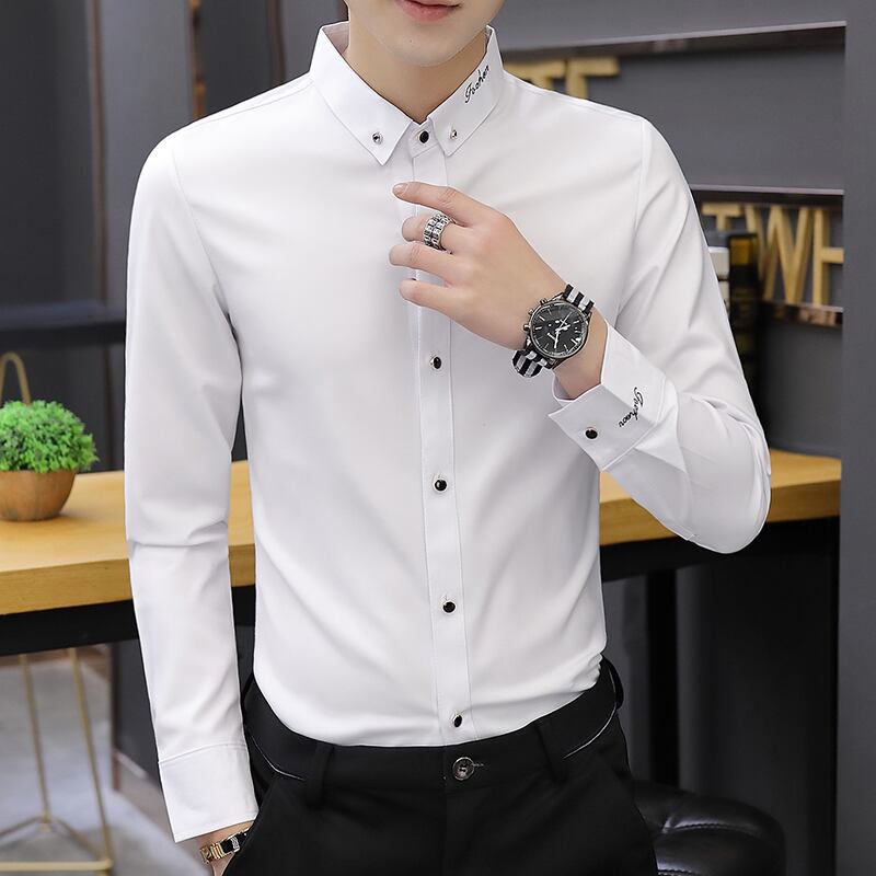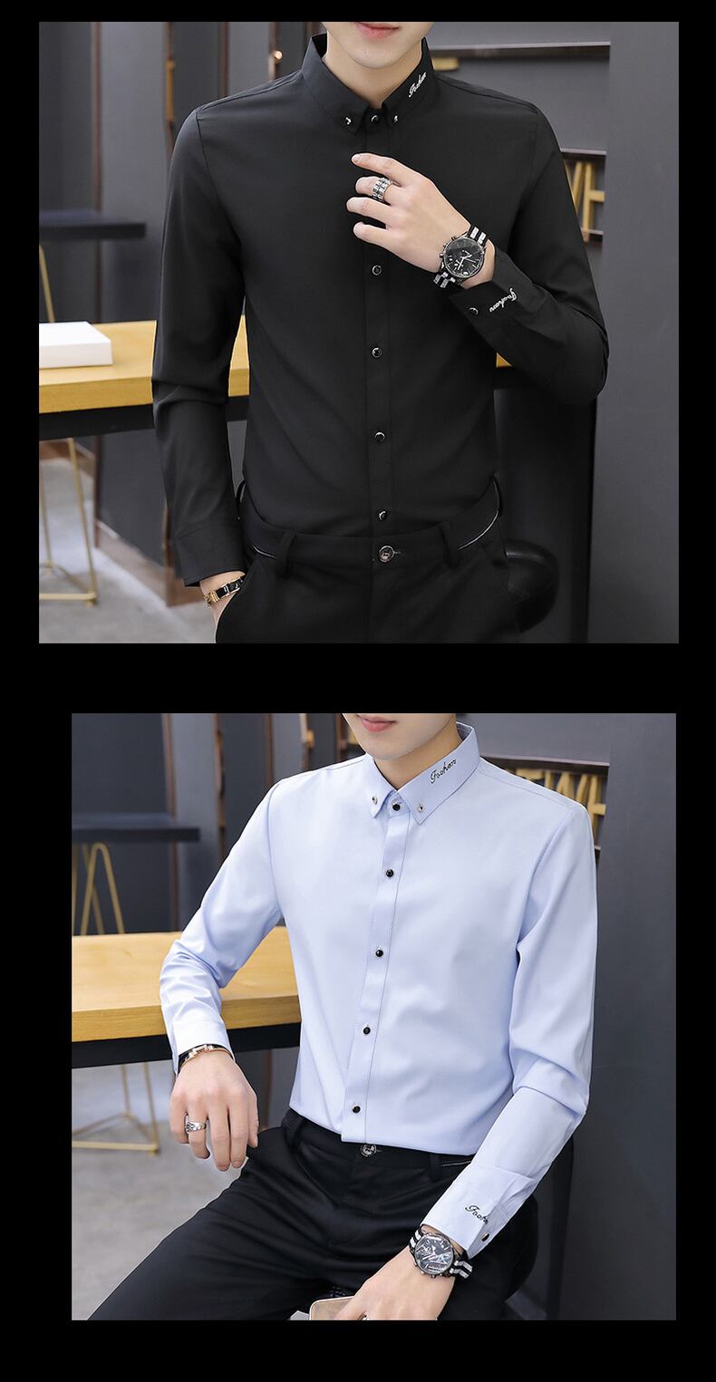 Spring and summer new shirt men's long-sleeved anti-wrinkle non-iron black shirt men's fit handsome elastic inch shirt tide ロング ブラック エラスティック 伸縮 スプリング 春物 サマー 夏物 doushi45260043910