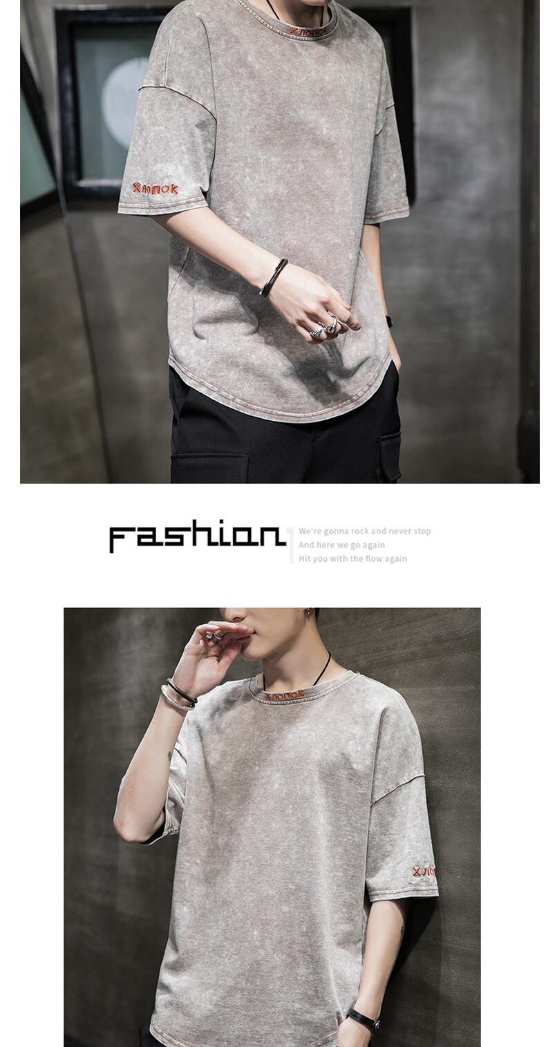 National trend denim short-sleeved T-shirt men's summer 2022 new loose casual five-point half-sleeve T-shirt ins trend カジュアル サマー 夏物 Tシャツ doushi73034717057