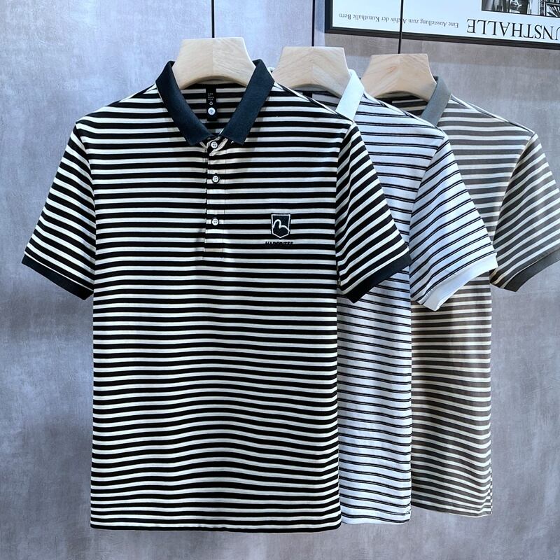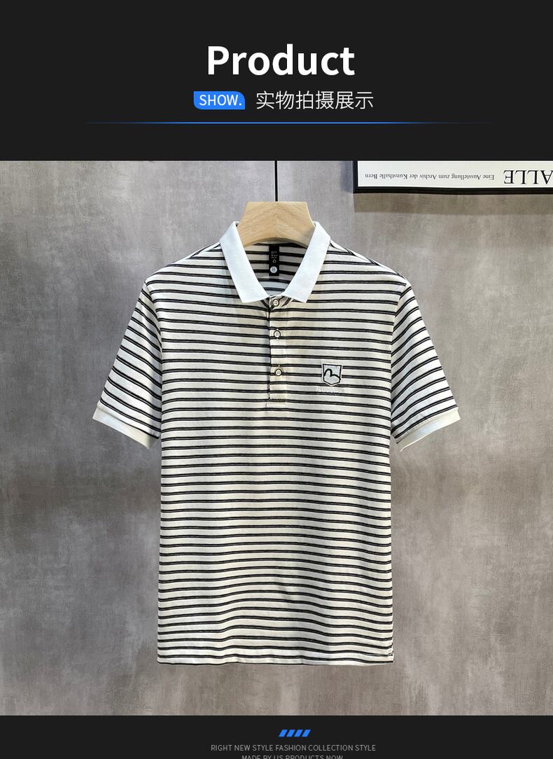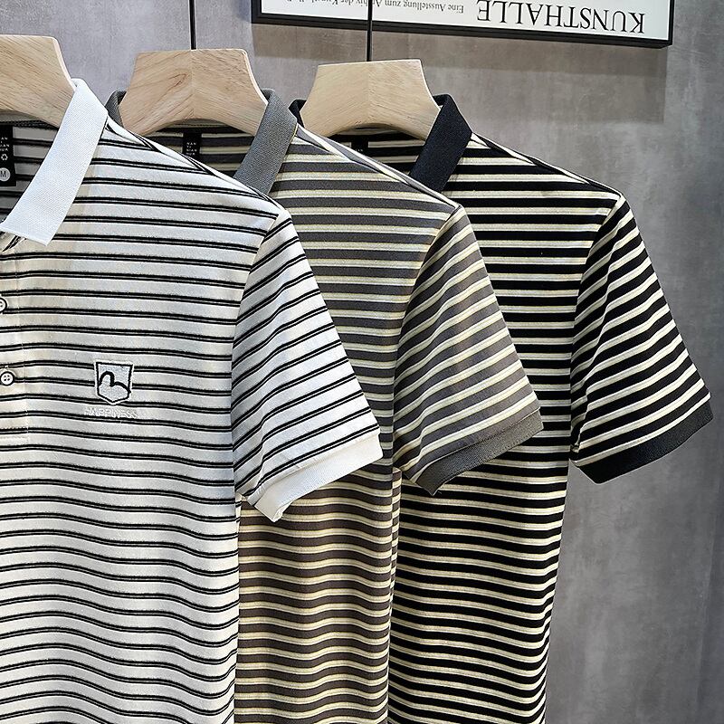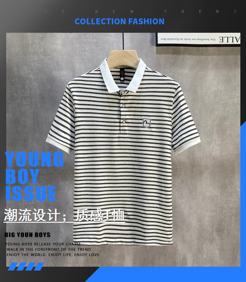 Summer men's shirt collar Paul stripe short-sleeved T-shirt with collar youth tide brand Polo shirt lapel T-shirt サマー 夏物 ストライプ Tシャツ doushi50663275244