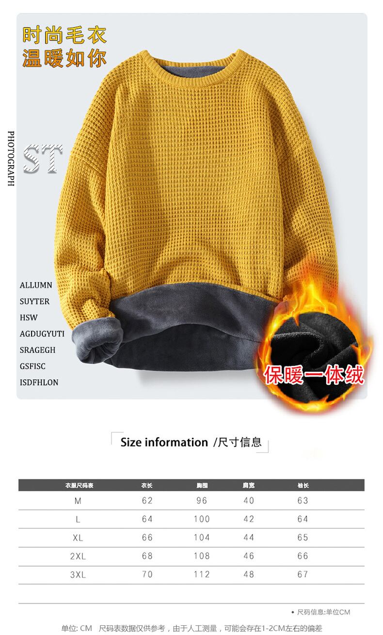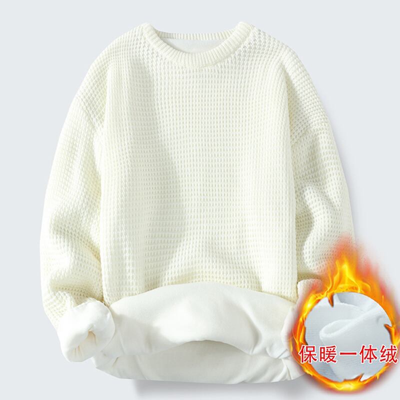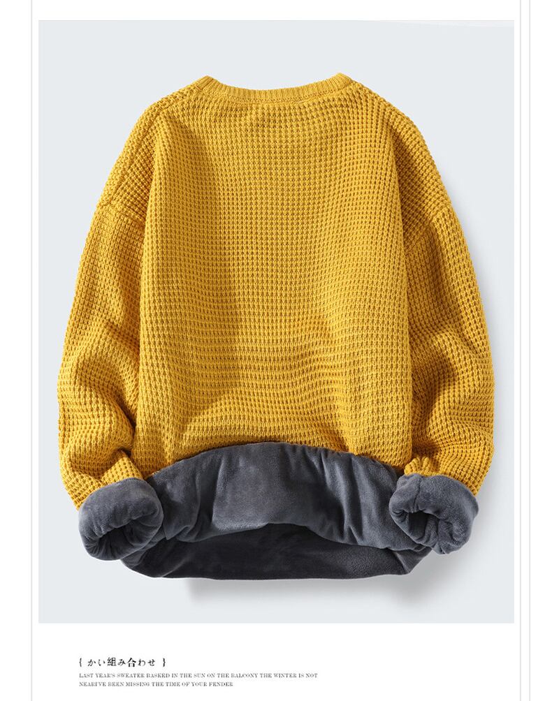 Warm sweater men's top plus velvet thick trend loose autumn and winter low-neck round neck bottoming sweater オータム 秋物 ウィンター 冬物 Oネック doushi41270163965