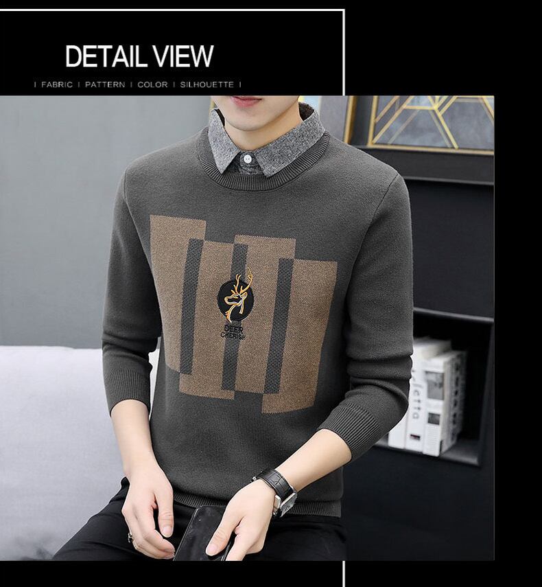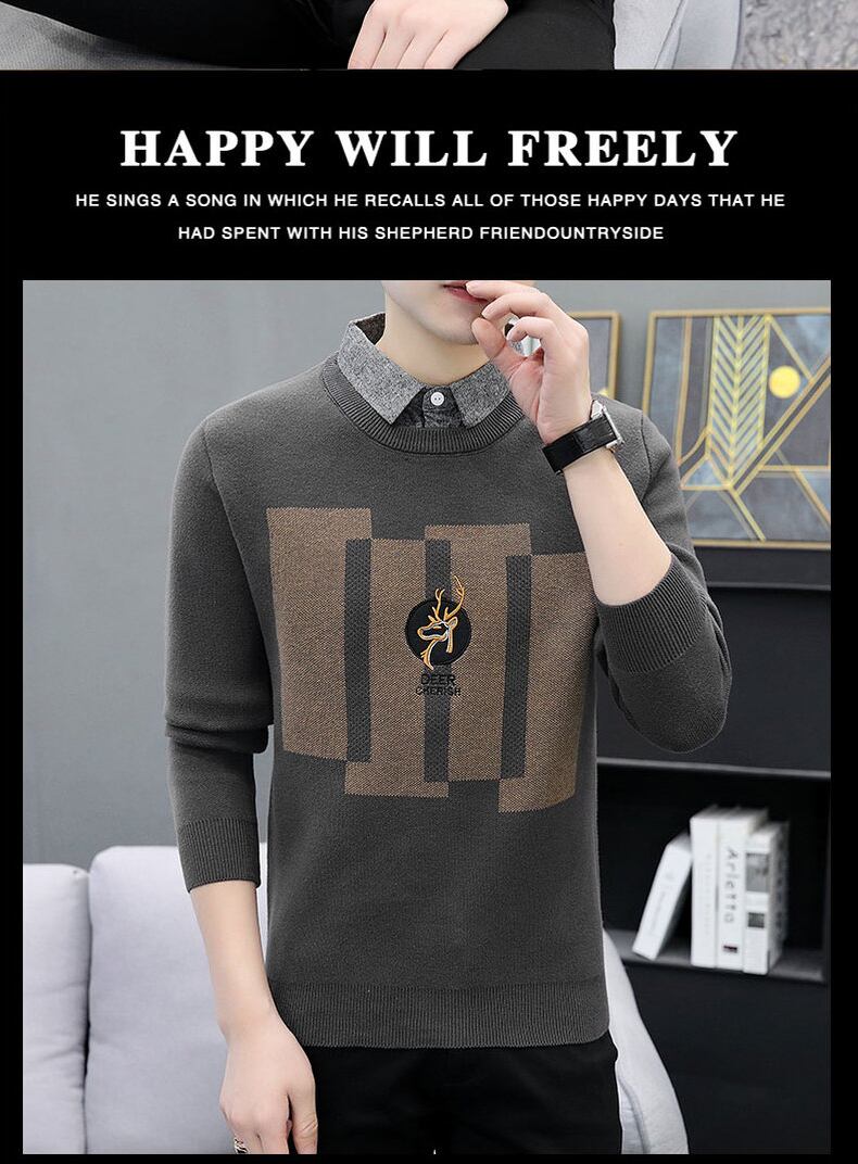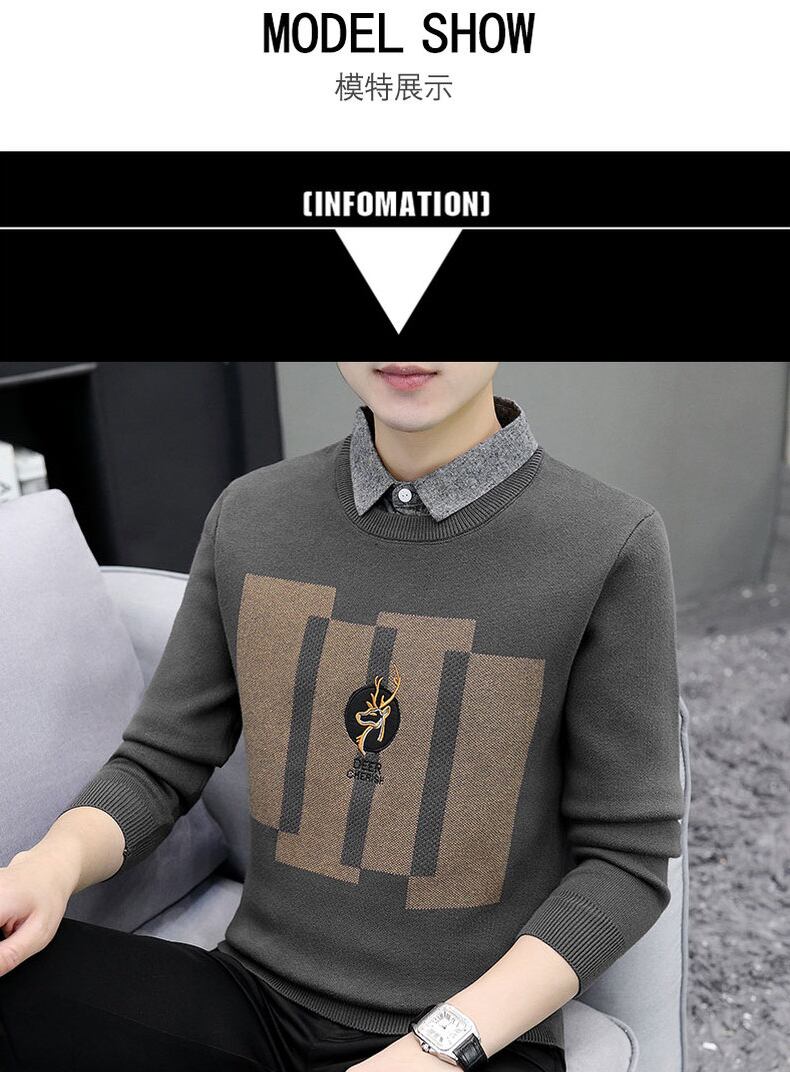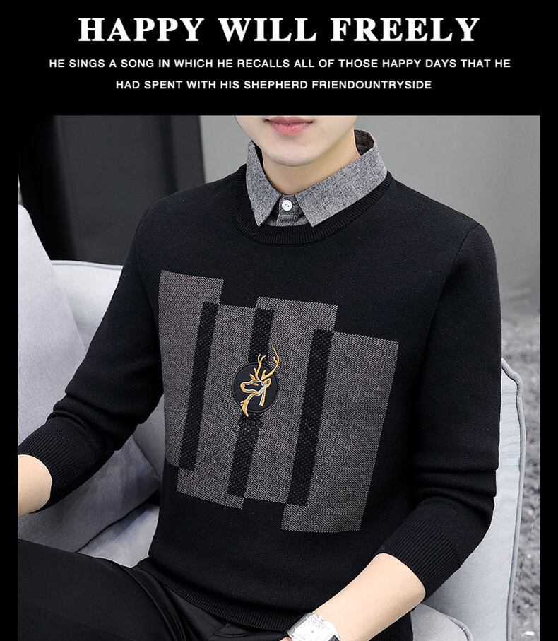Fake two-piece sweater men's shirt collar knitted sweater spring and autumn style trend inner long-sleeved autumn bottoming shirt ロング スプリング 春物 オータム 秋物 doushi45431021775